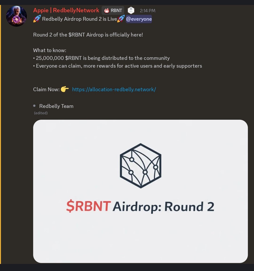 RedbellyNetwork Discord appears to be compromised, RBNT fake airdrop scam, beware phishing links and wallet security.