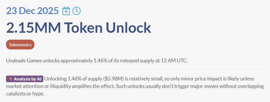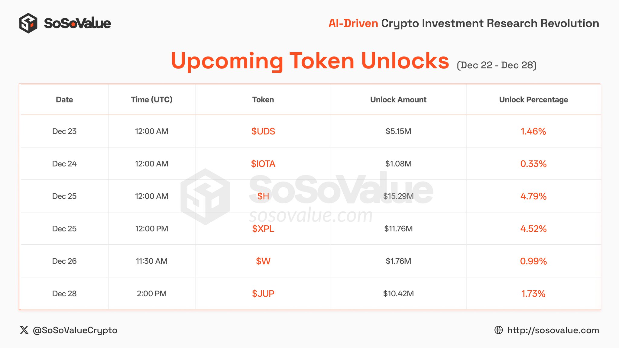 ⏰ Upcoming Token Unlocks (Dec 22 - Dec 28 )