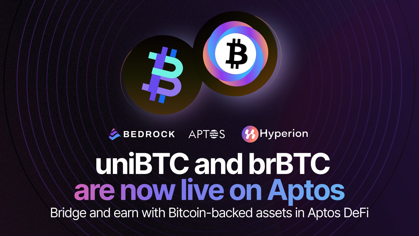 Bedrock's BTC derivatives uniBTC and brBTC are now live on Aptos, supporting cross-chain and liquidity mining.