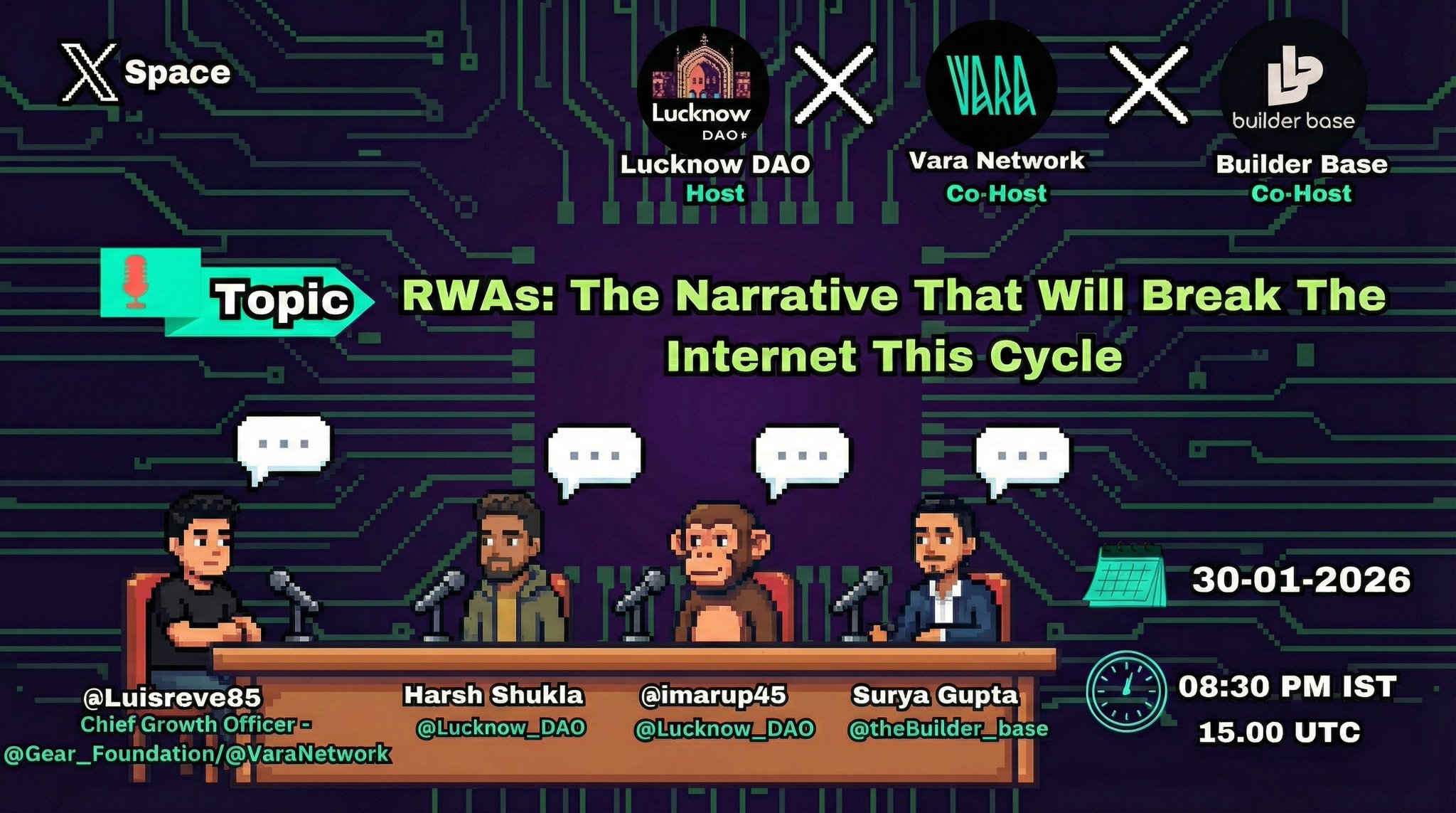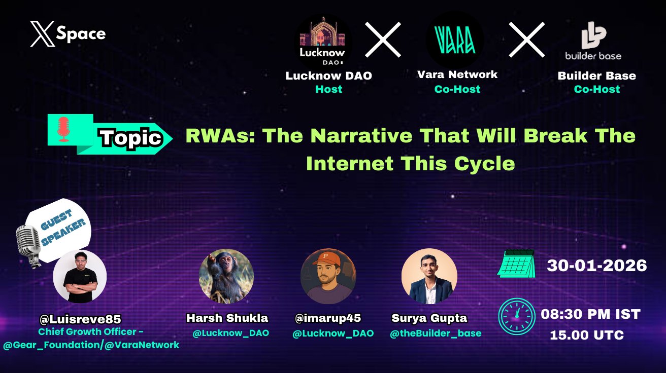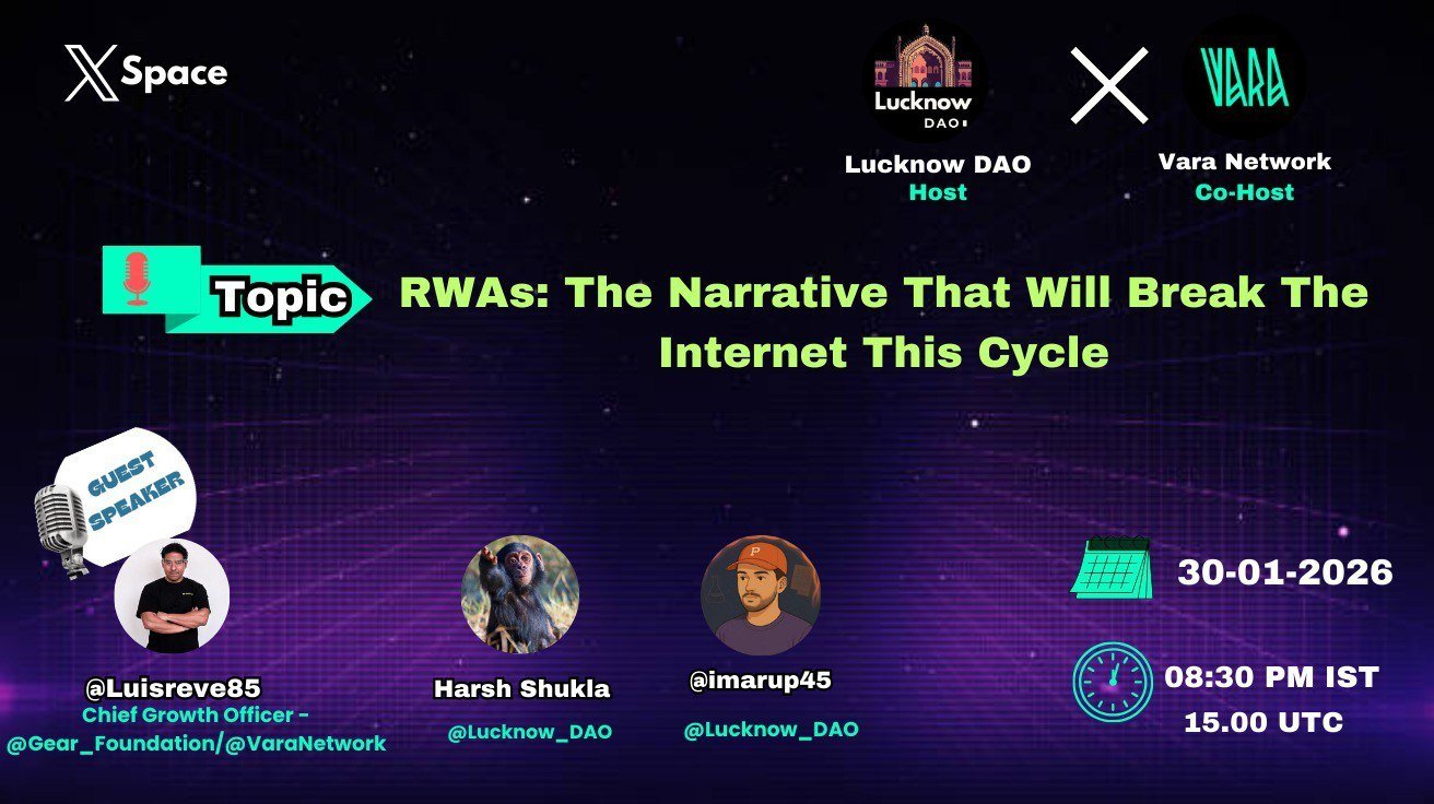 Lucknow DAO and Vara Network will host an X Space to discuss RWAs, believing it is the narrative that will break the internet this cycle.