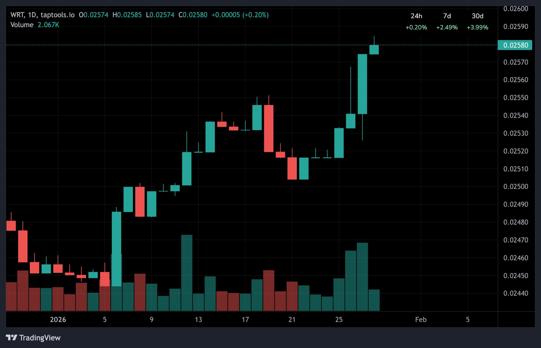 WRT's recent price has been continuously rising, performing well in the Cardano ecosystem.