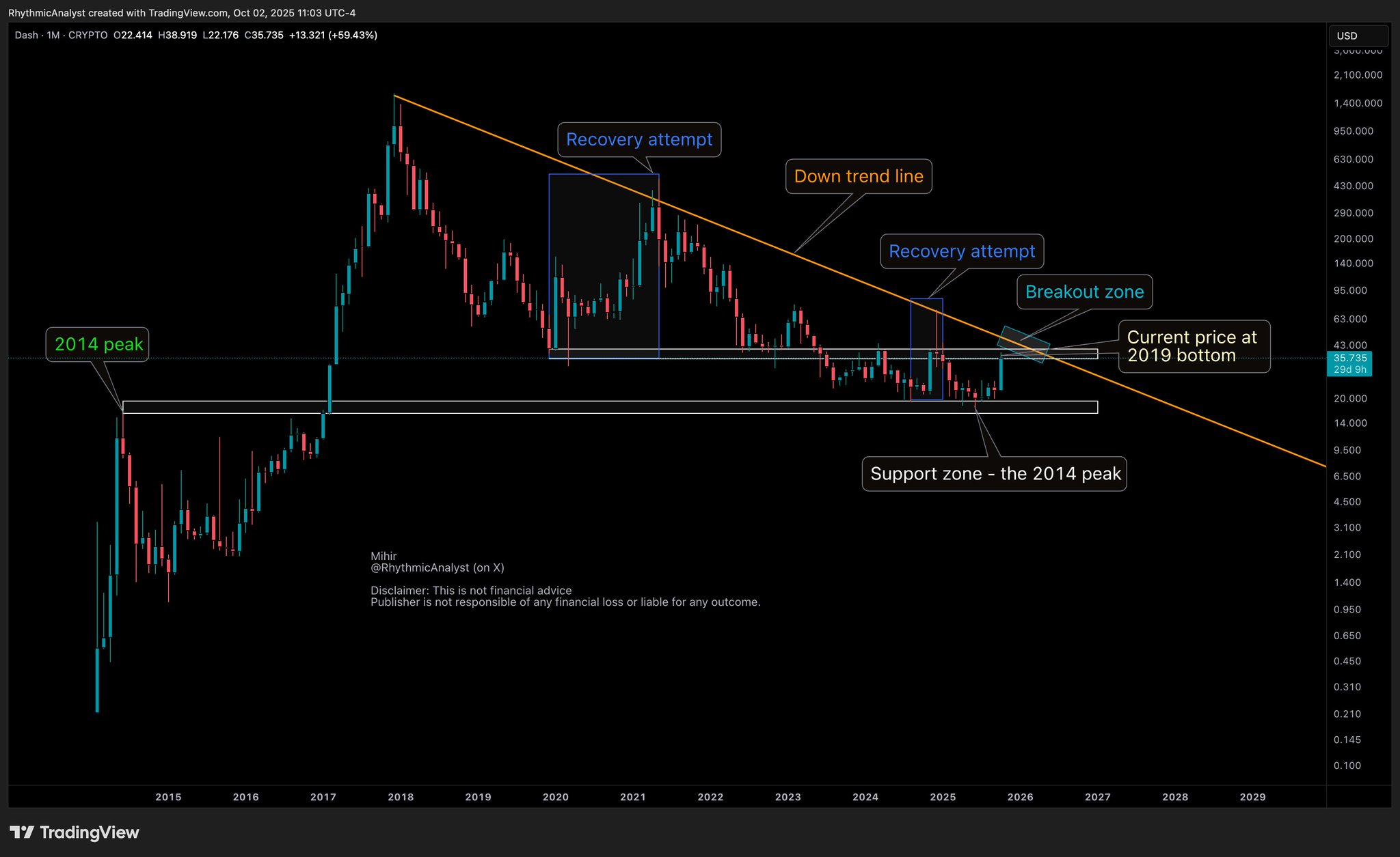 7 2 1.44K Original >Tendência de DASH após o lançamentoExtremamente Bullish