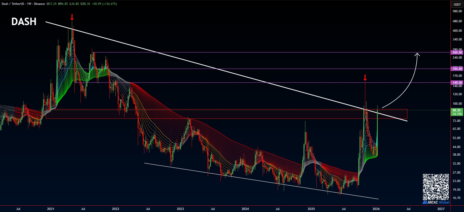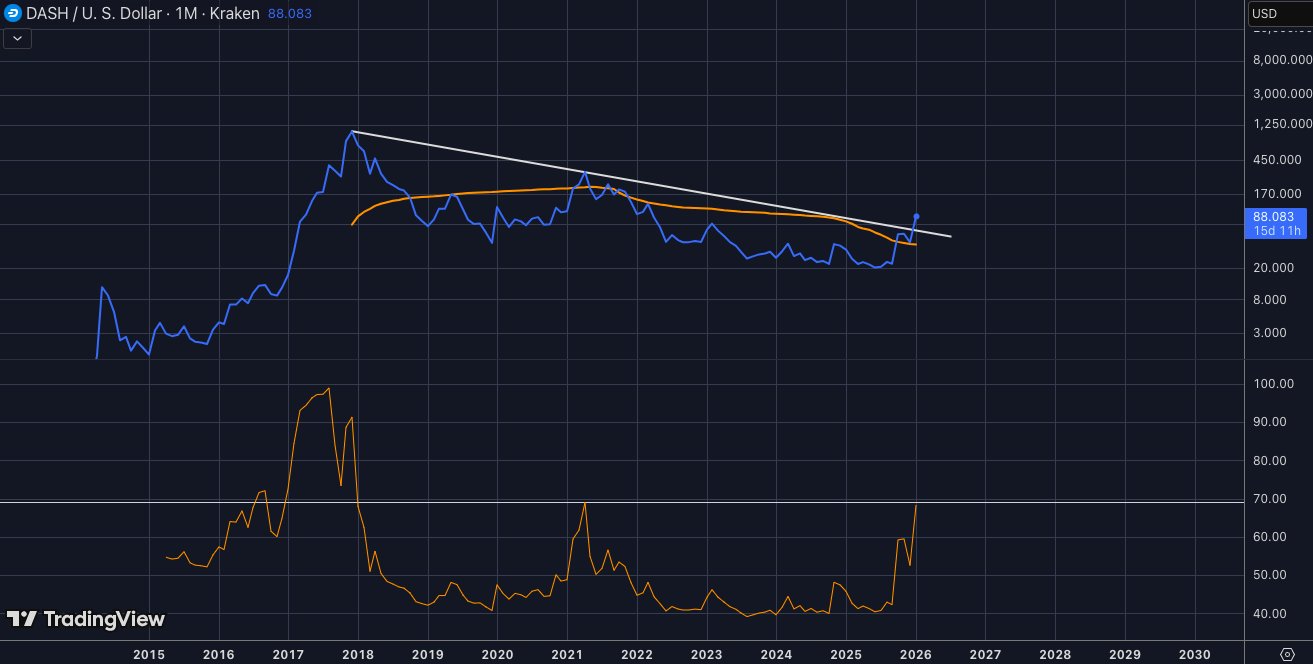 4 5 70 Original >Tendência de DASH após o lançamentoExtremamente Bullish