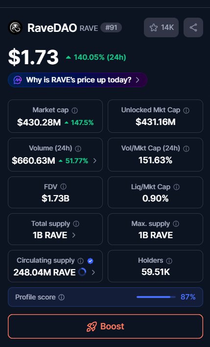 37 21 1.19K Ler original >Tendência de RAVE após o lançamentoExtremamente Bullish