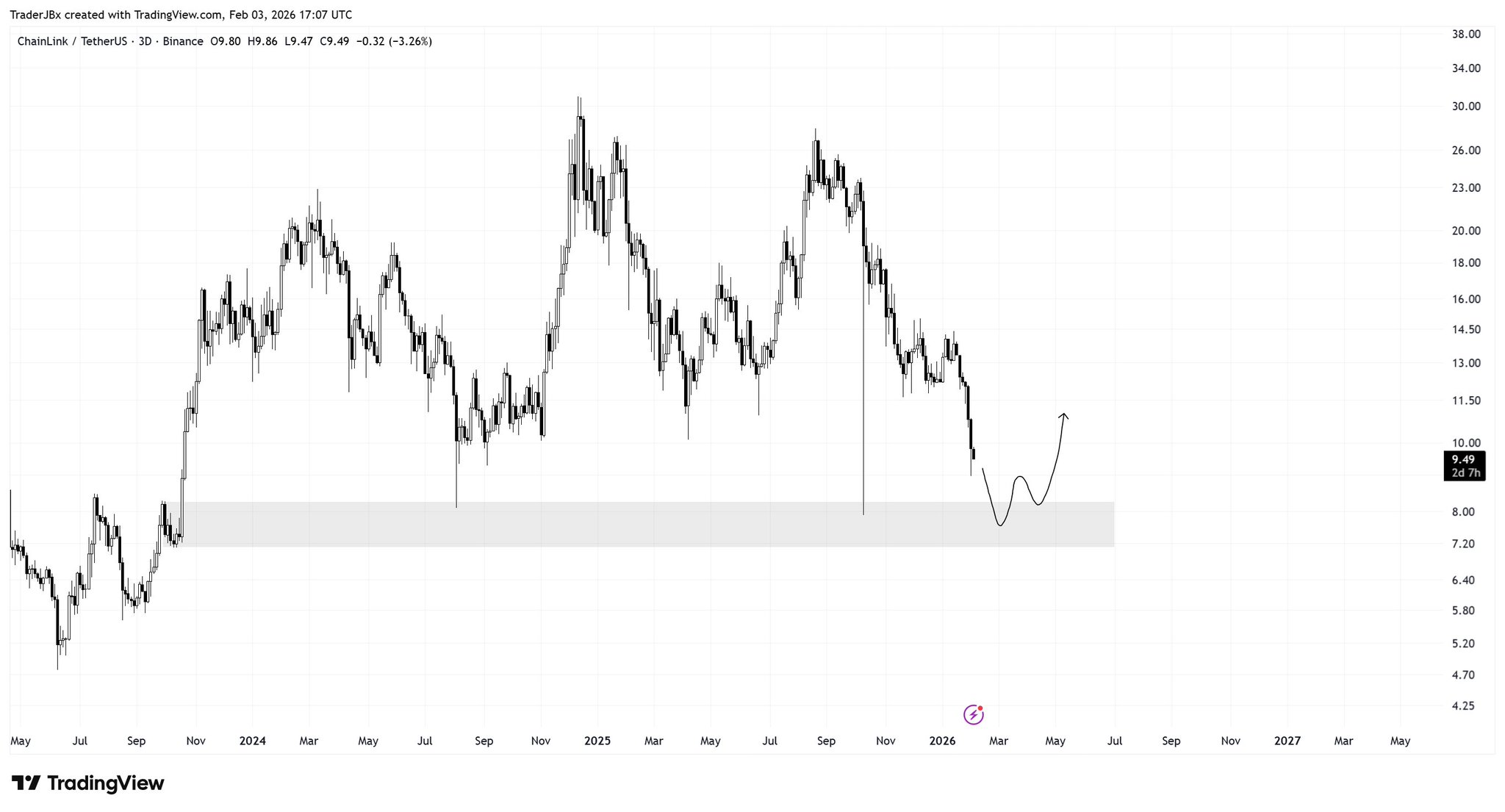 LINK short-term fell out of the range, and is expected to further decline to the demand zone; the author remains on the sidelines.