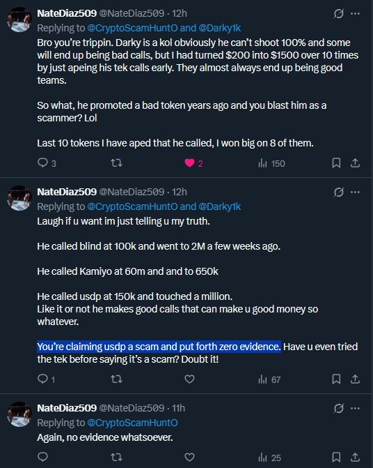 @CryptoScamHuntO @Darky1k It’s holding 350k after a mass report of their x and getting it banned. They’re doing just fine. Not a scam, you’ve still offered zero proof to back your claims.