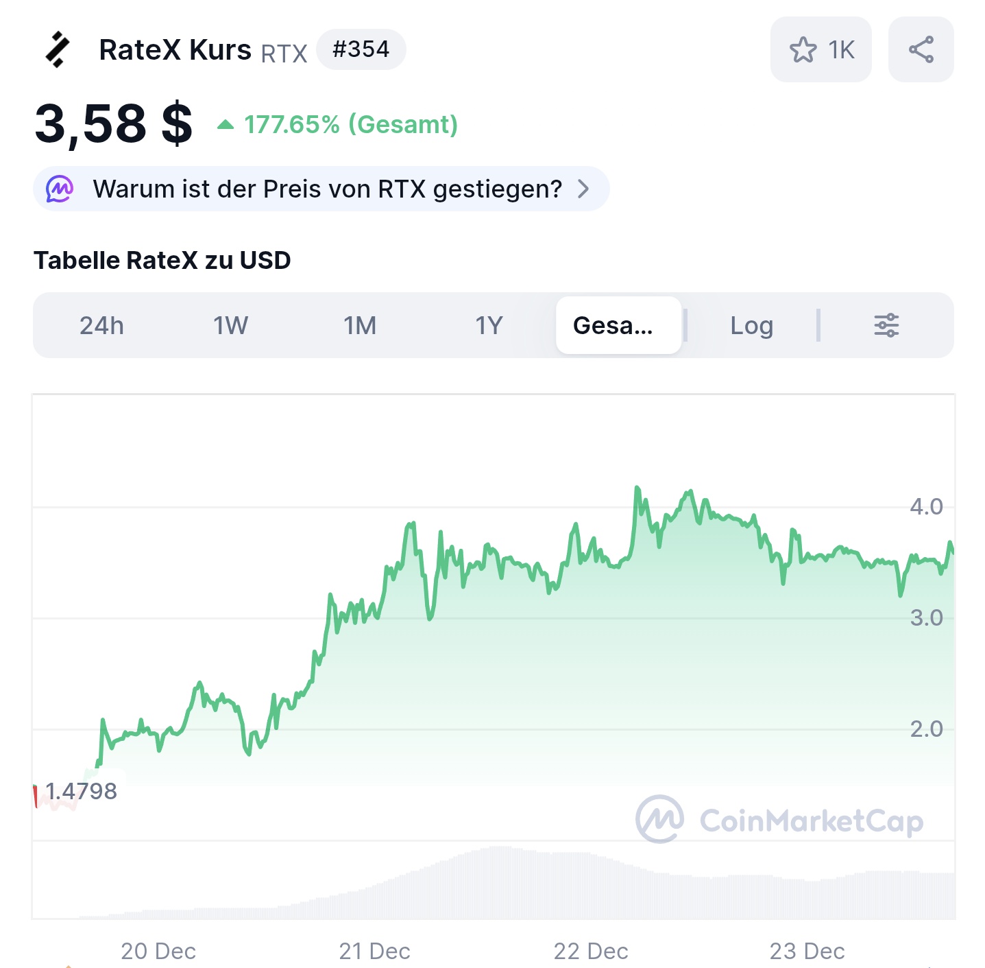 RTX token performance is remarkable, price rose 177.65% to $3.58.
