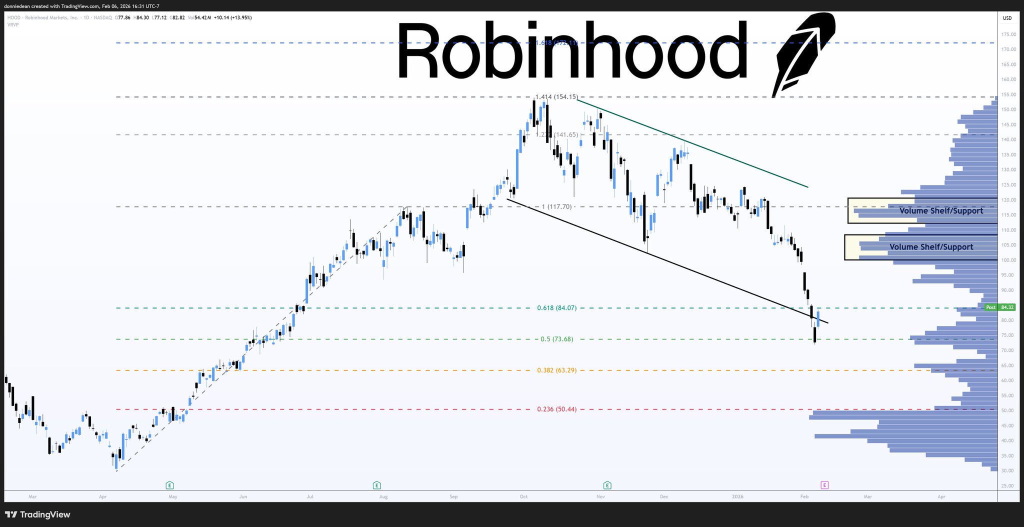 Chart Request: $HOOD Robinhood - Finding support before earnings on 2/10, will they beat the street?👀