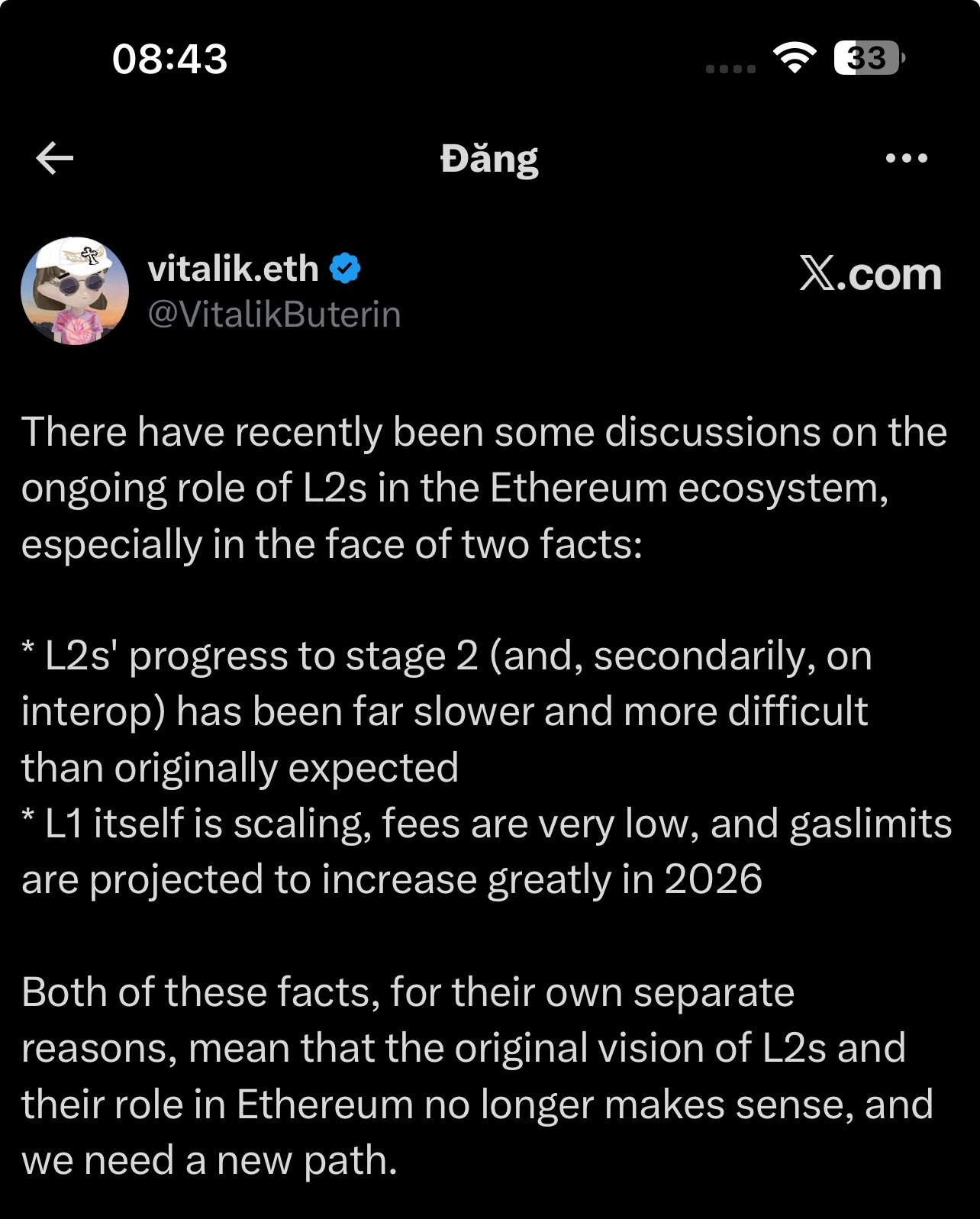 "Both of these truths, for distinct reasons, indicate that the original vision of L2 and its role in Ethereum is no longer appropriate, and we need a new direction."