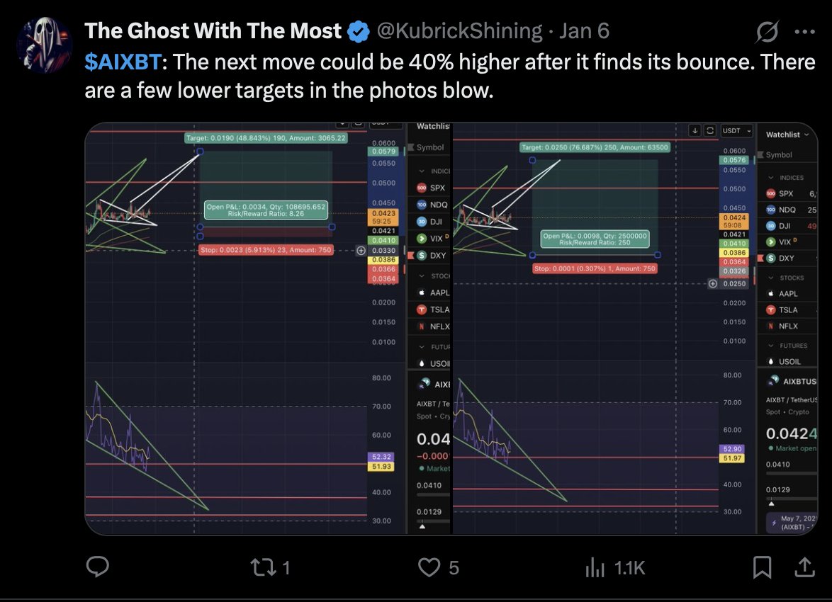 - Тренд AIXBT после выпускаЧрезвычайно бычий