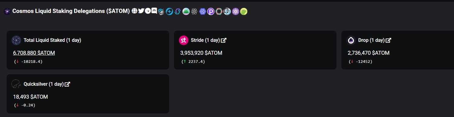 CosmosBG Degen Fight Club⚛️🉐☯️🏴☠️🐉🧪⚡️ 🛰 TA_Analyst Media B1.92K @IvanM10529875#Cosmos Liquid Staking Landscape – @stride_zone Remains the Dominant Player ⚛️💧 Recent data on Cosmos liquid staking delegations for $ATOM clearly confirms Stride as the leading — and effectively the only significant — active protocol in the space. 🔹 Total Liquid Staked: 6,708,880 $ATOM (↓10,218 in the last 24h) 🔹 Stride: 3,953,920 $ATOM (~59% market share) → +2,237 (net inflow, showing strong user confidence) 🚀 🔹 Drop: 2,736,470 $ATOM (~41%) → ↓12,452 (sharp outflow due to the protocol's announced shutdown and orderly wind-down) 📉 🔹 Quicksilver: Only 18,493 $ATOM (~0) → negligible presence and minor decline With Drop in the process of ceasing operations (following its official announcement to cancel TGE, airdrop, and gradually terminate services), and Quicksilver holding an insignificant share, Stride stands alone as the viable, growing liquid staking solution for $ATOM in the Cosmos ecosystem. This trend reflects user migration toward the most reliable and actively maintained protocol. Stride continues to deliver secure, multi-chain liquid staking (stATOM and beyond) while others fade. The future looks bright for Stride holders and users — dominance achieved! 🌟 #Cosmos #ATOM #LiquidStaking #Stride #stATOM #Crypto #DeFi #CosmosEcosystem ⚛️☯️🏴☠️