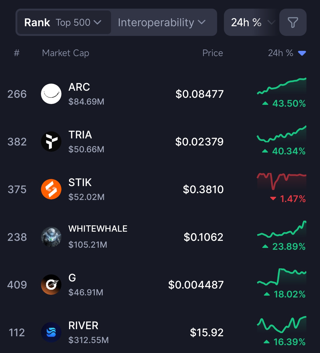 ARC tops 24‑hour gains, leading the top 500 cryptocurrencies.