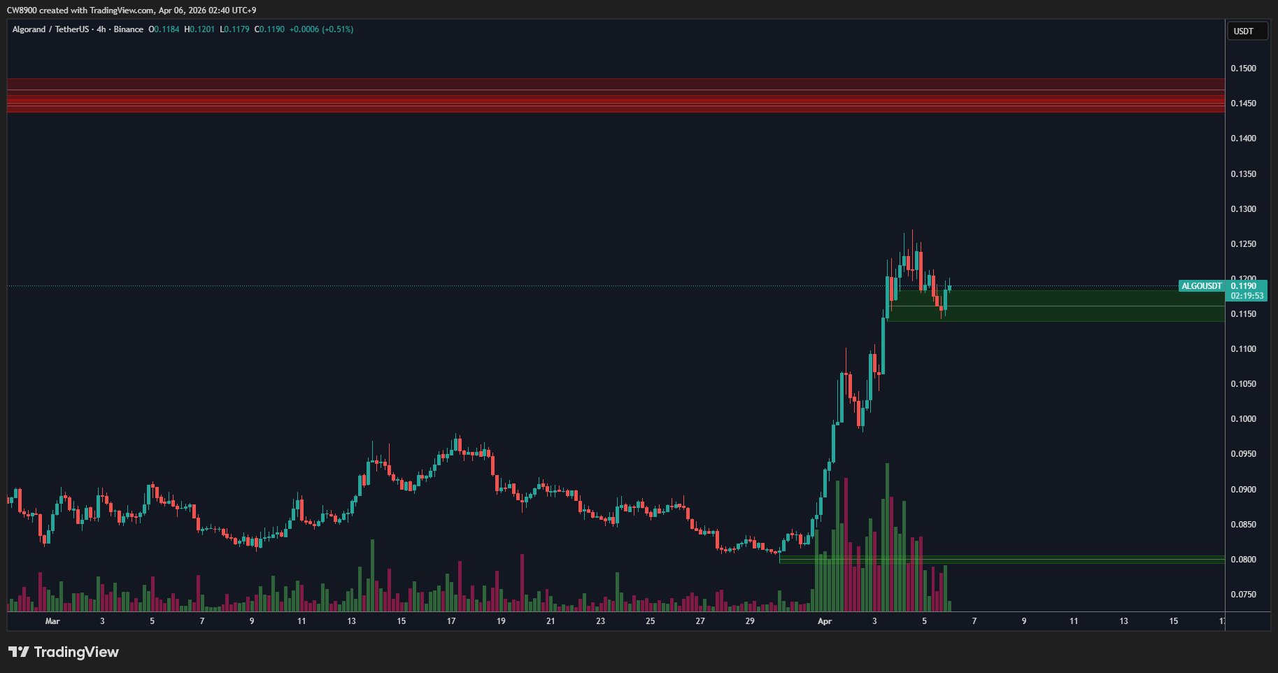 ALGO rebounds from the buy wall, targeting a sell wall at $0.145.