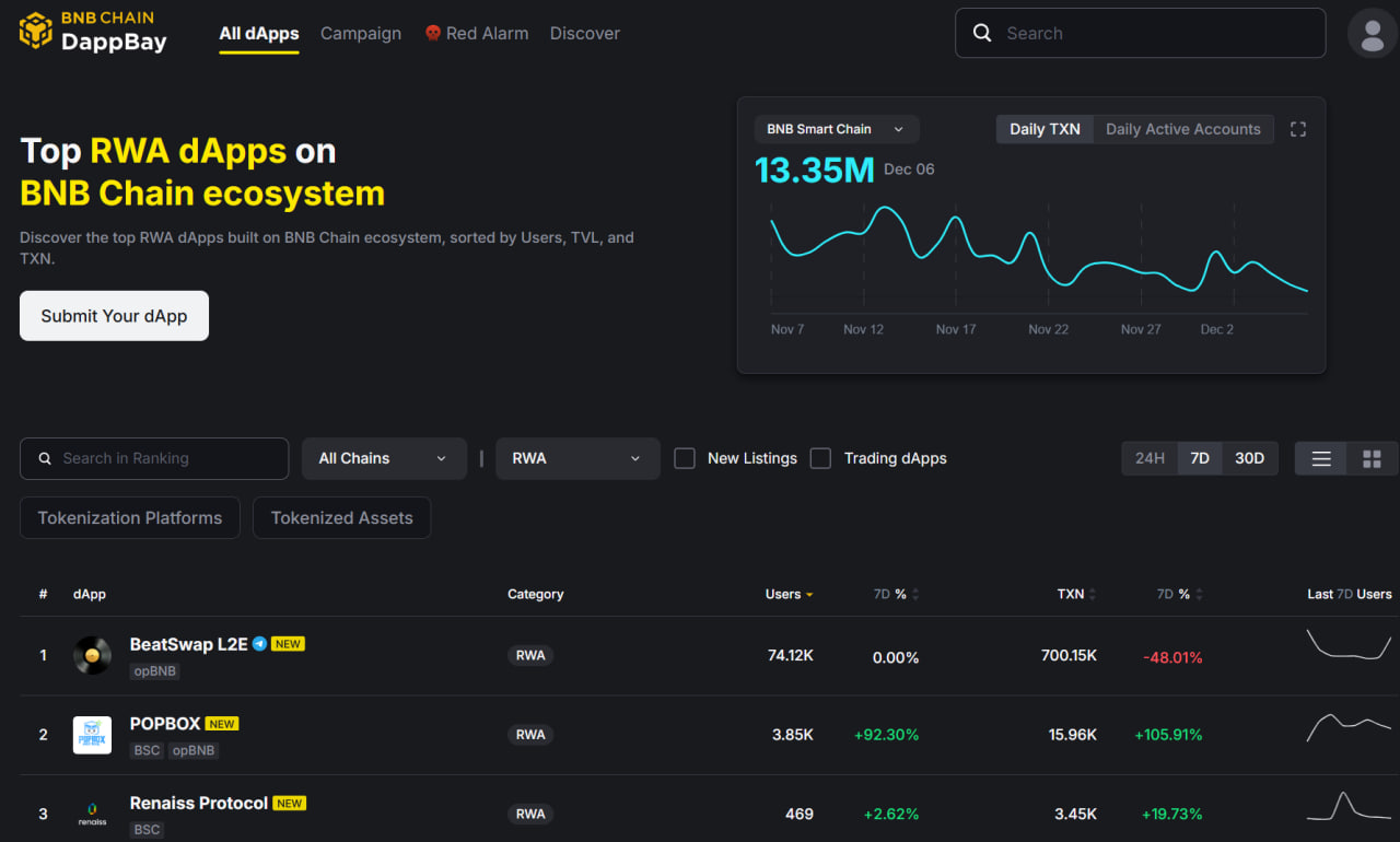 Check this out too, they rank 1 in the Top RWA dApps on the BNB ecosystem: