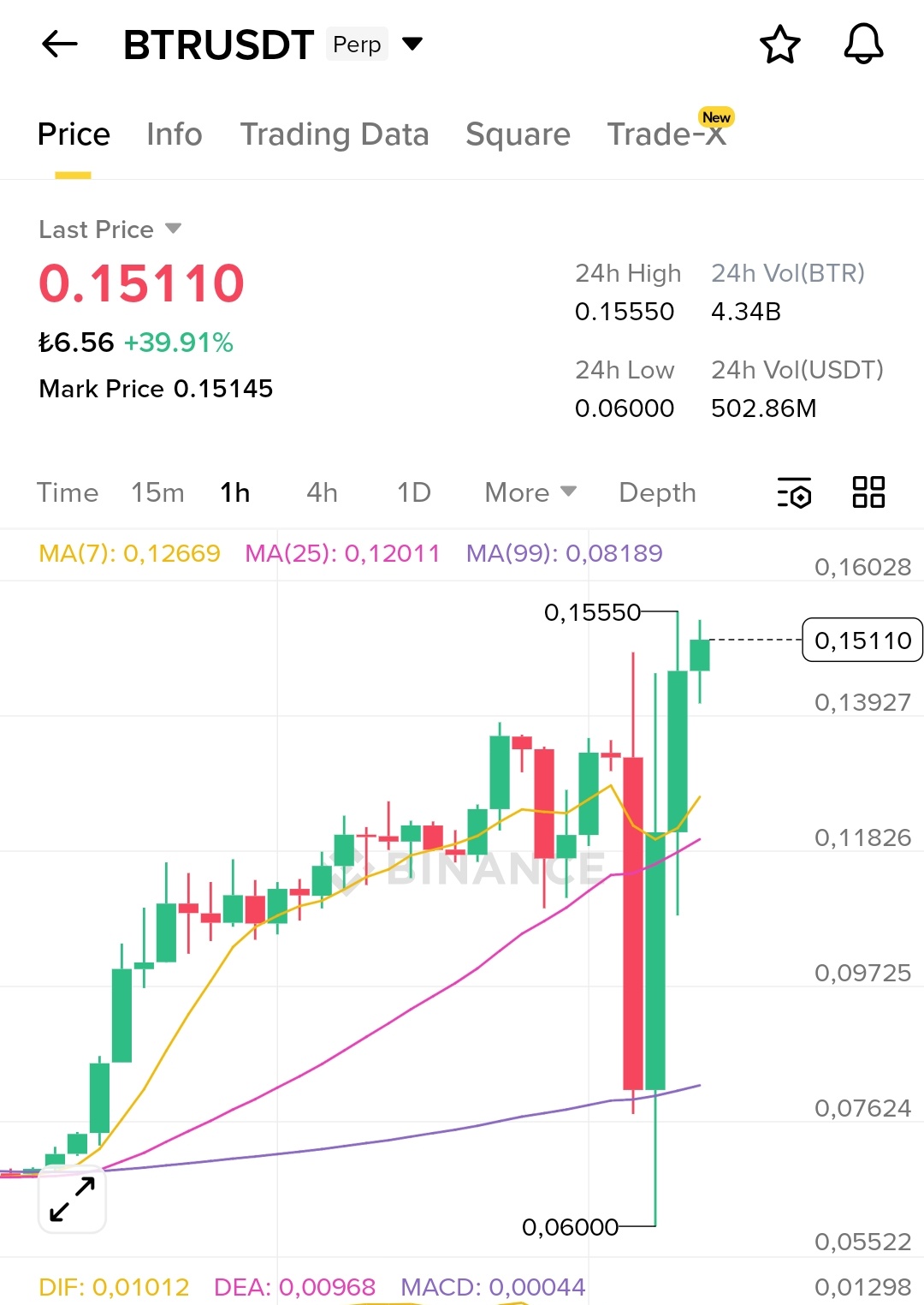 BTR price is wildly volatile, the tweet warns of futures trading risk, avoid irreversible consequences.