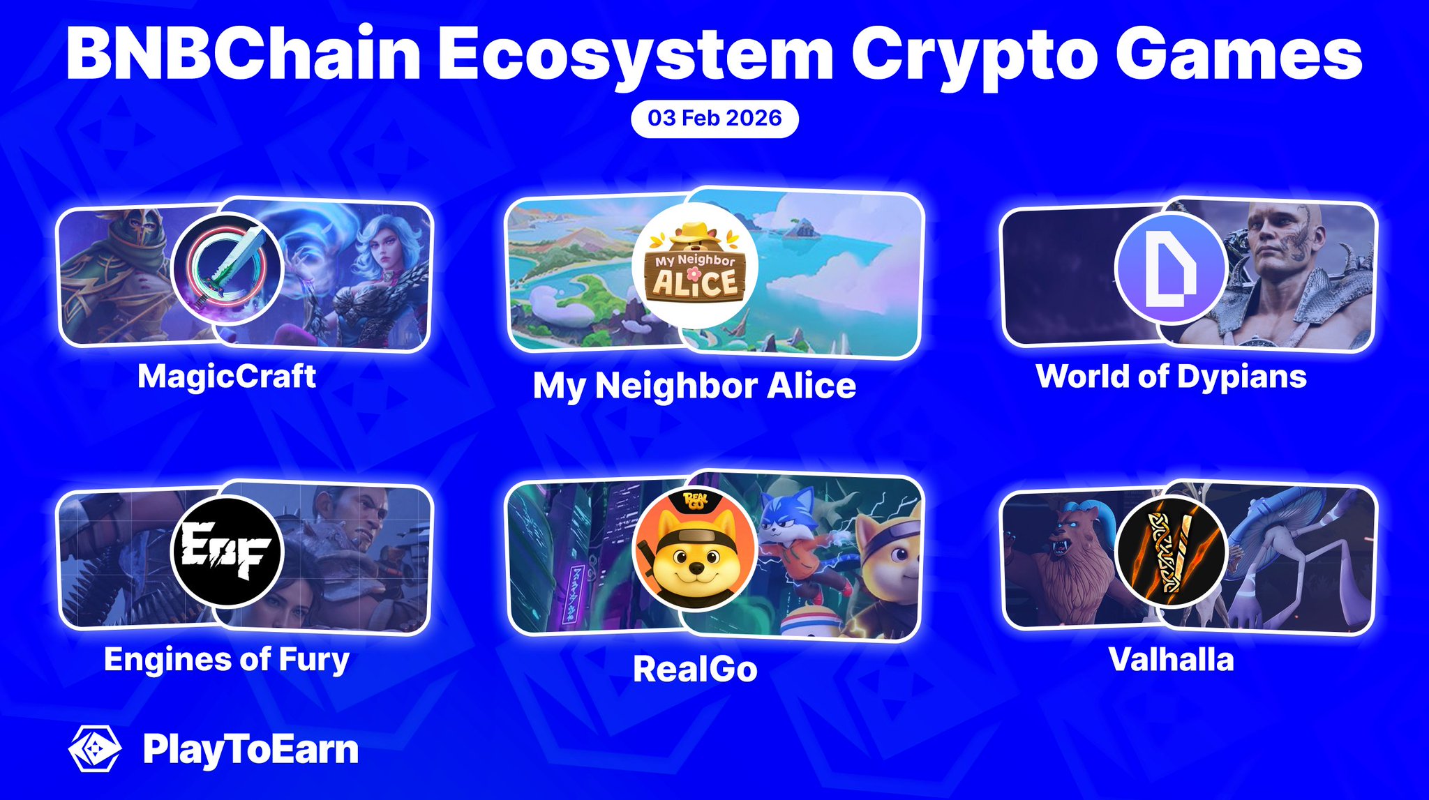 BNBChain promotes its successful gaming ecosystem, showcasing multiple top crypto gaming projects.