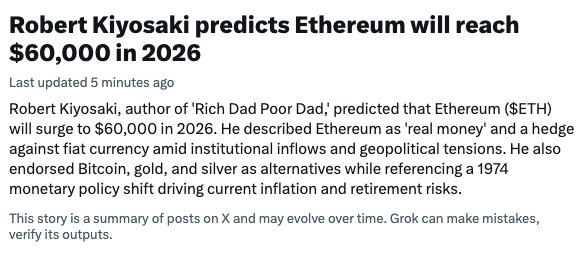 Robert Kiyosaki thinks $ETH will hit $60,000 this year. https://t.co/79WL4iK6Xs