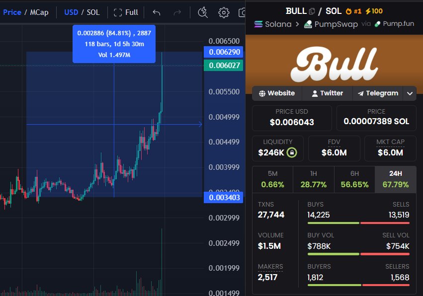 BULL/SOL market cap broke $5m, strong momentum, achieving a 35x increase.