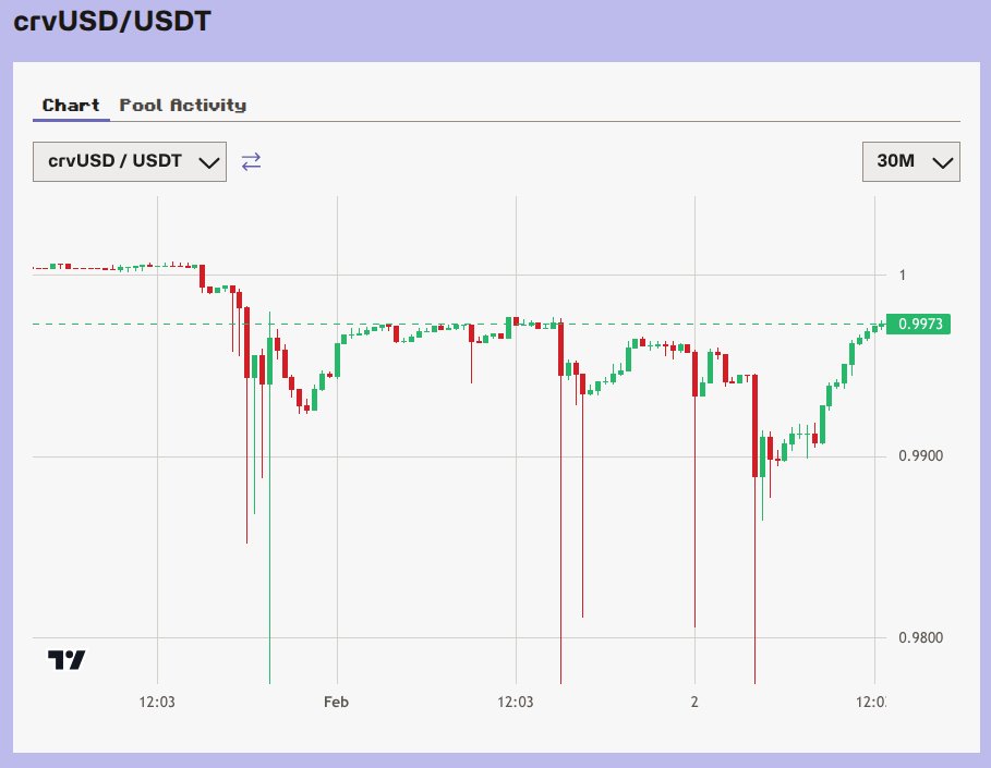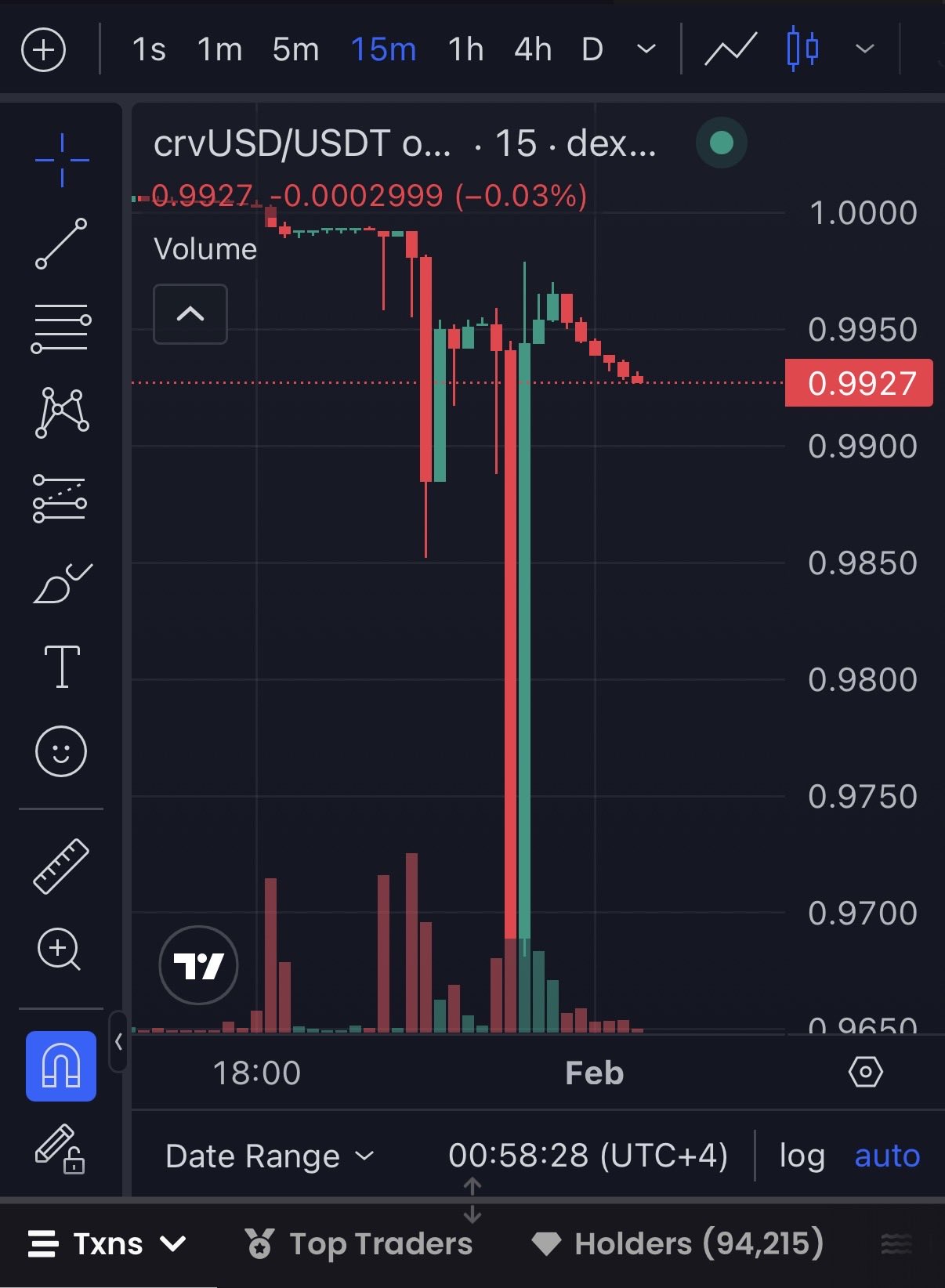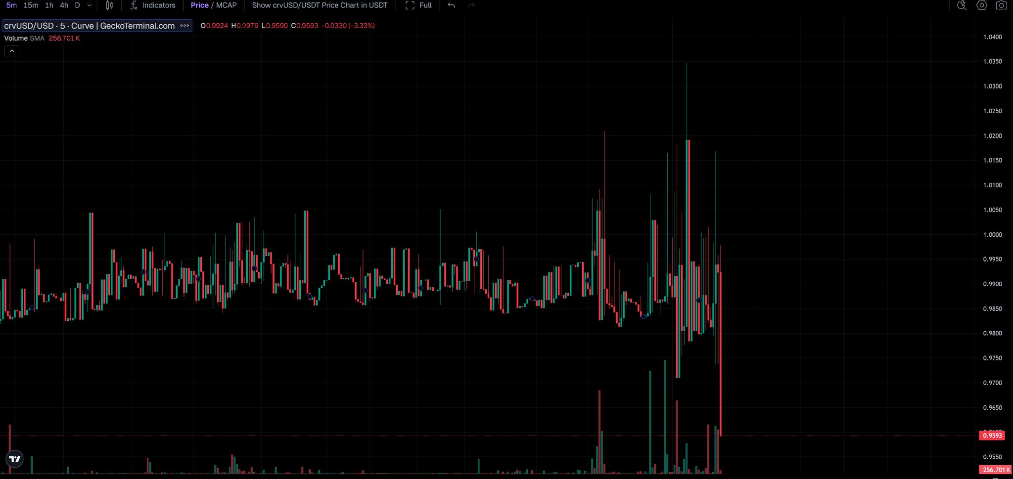 I checked biggest (> $30m TVL) $crvUSD/USDC & USDT pools manually at @dexscreener and minimal price there was ~0.97