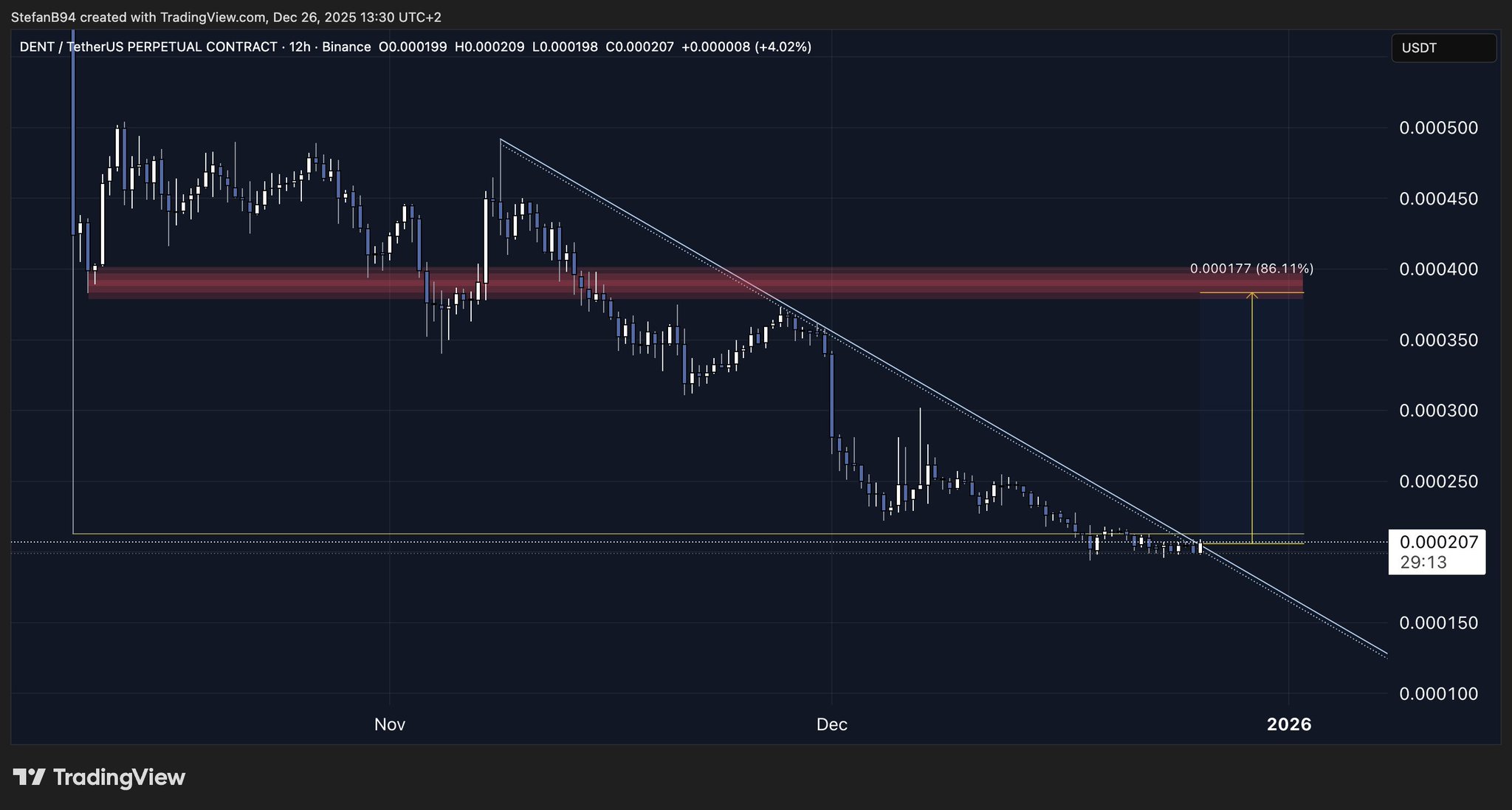 When deciding whether it’s a good time to buy or sell Dent (DENT), it’s important to first align with your own trading strategy and risk profile.Long-term investors and short-term traders often interpret market conditions differently, so your decision should reflect your personal approach. According to the latest DENT 4-hour technical analysis, the current trading signal is Hold. According to the latest DENT 1-day technical analysis, the current signal is Hold.