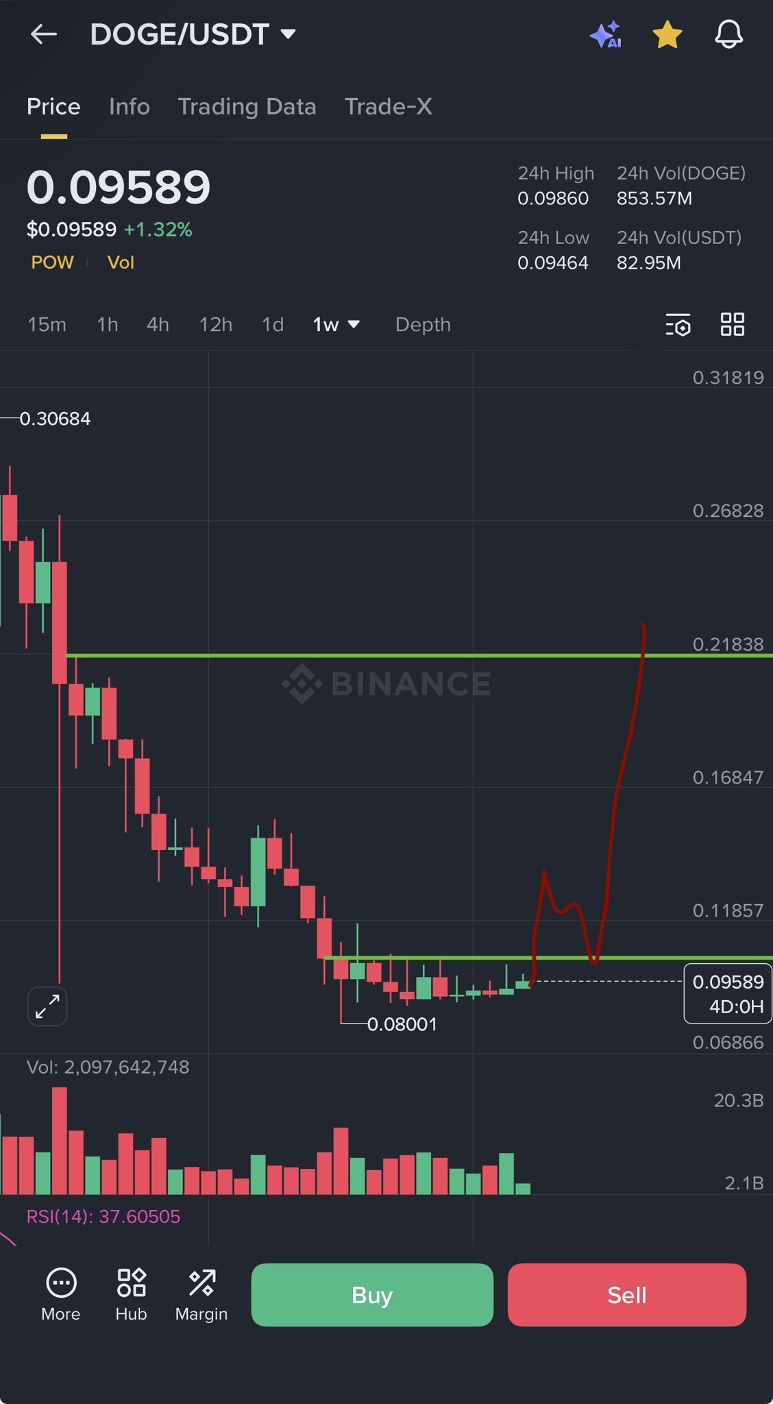 $ 0.095 (DOGE/USD)
