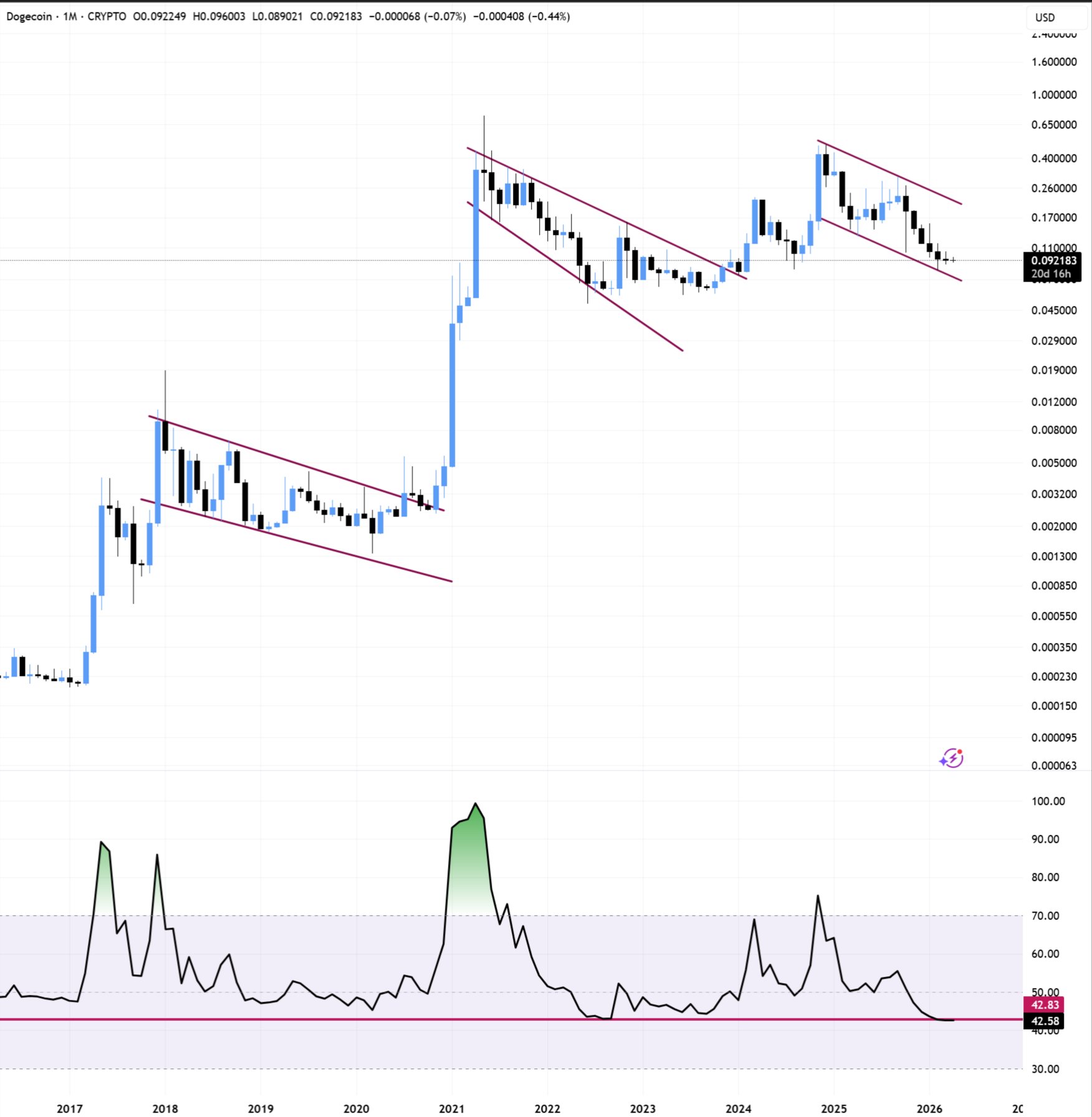 Last time monthly RSI went this low, DOGE formed a bottom.
