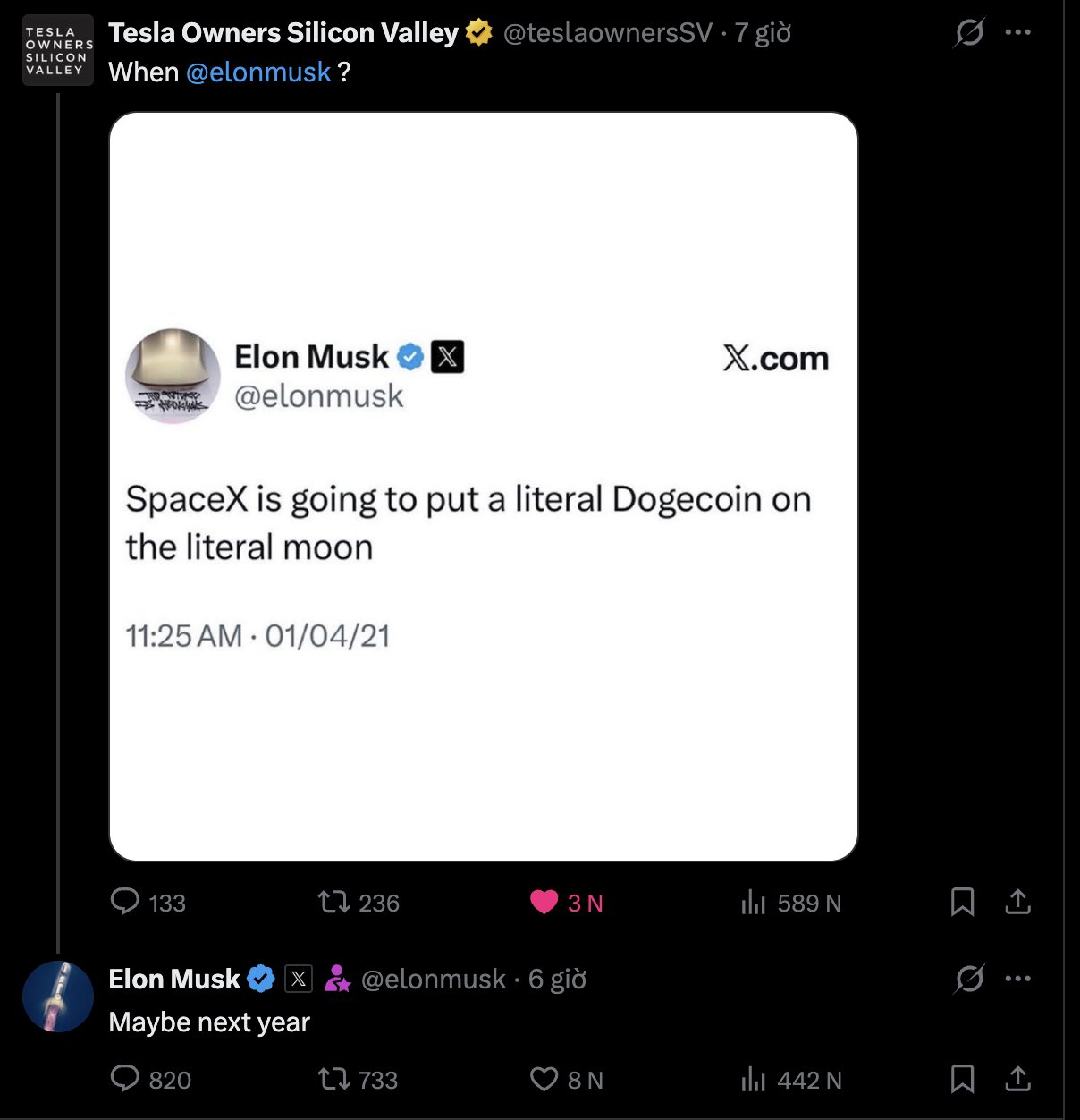 Latest: @ElonMusk says SpaceX may put $DOGE "on the literal moon" next year, reviving his 2021 pledge. https://t.co/UqKtpstXSM