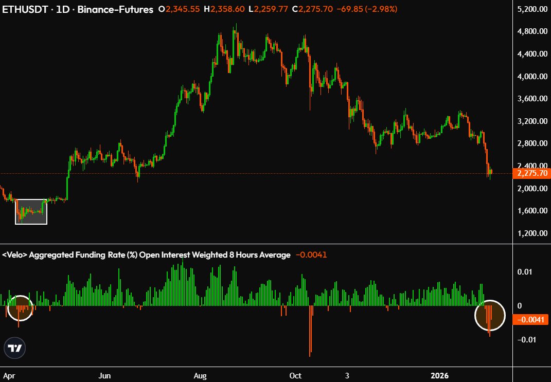 ETH's negative funding rate has persisted for 5 days, and historical data shows that after a similar situation, ETH surged 250%, indicating potential upside.