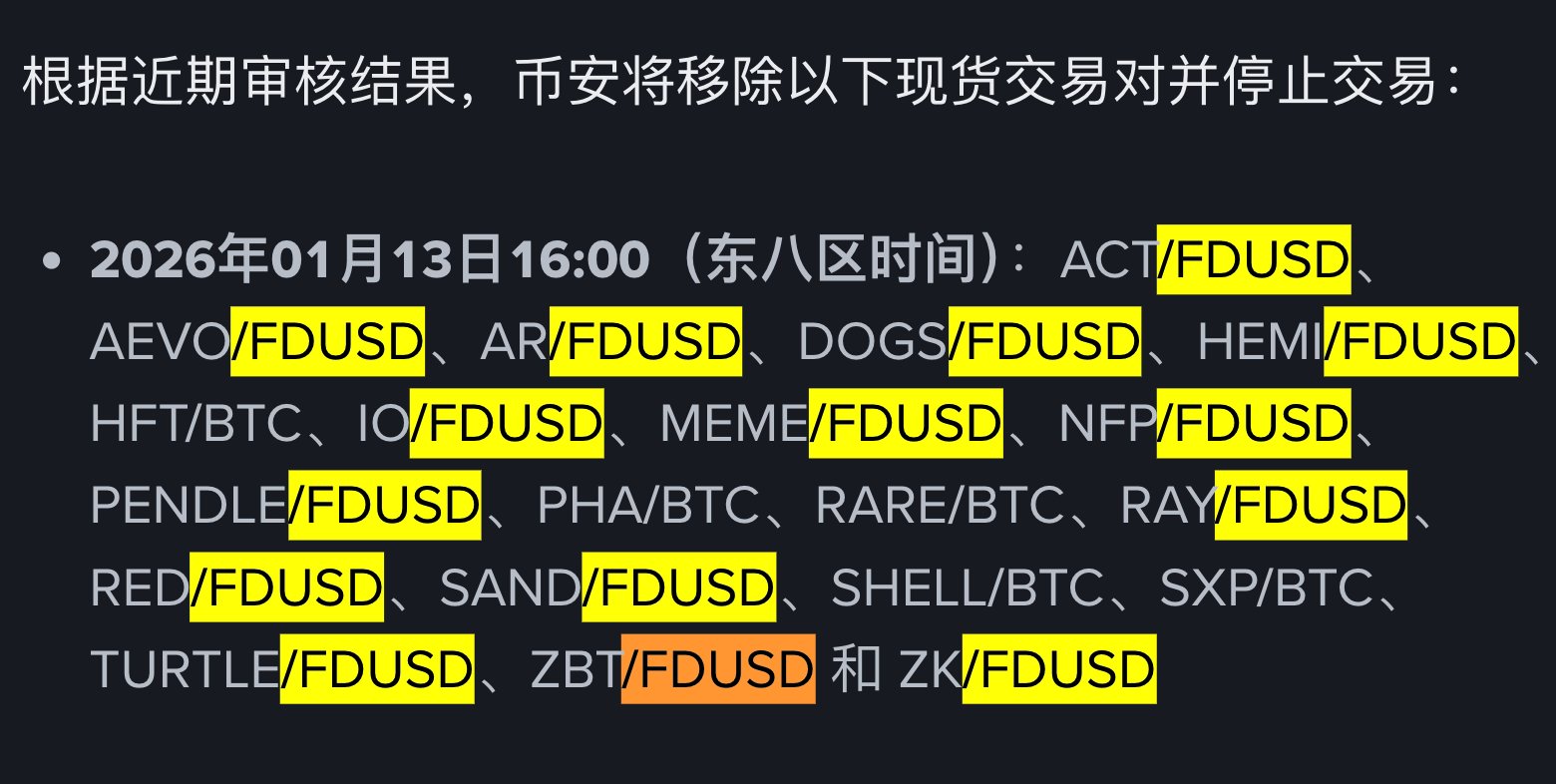 Binance delists 15 FDUSD trading pairs, including PENDLE and ZK, and launches the new stablecoin U.