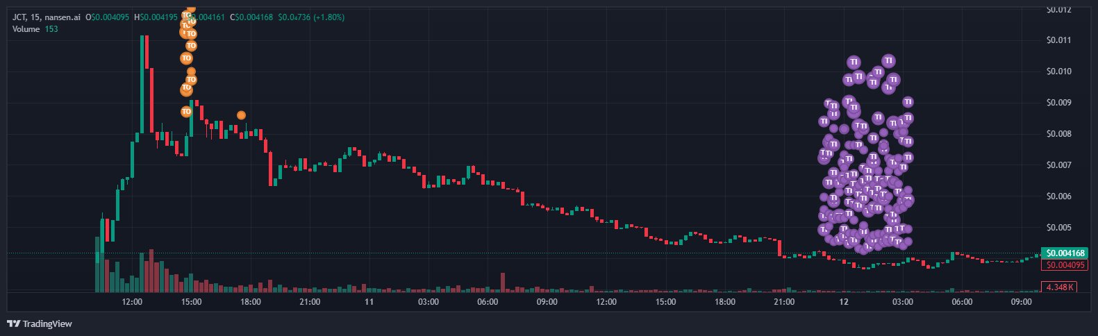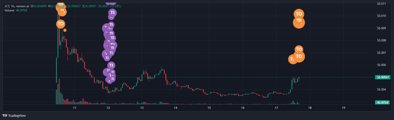 Wallets that acquired $JCT tokens last week during the dip have started gradually locking in small profits