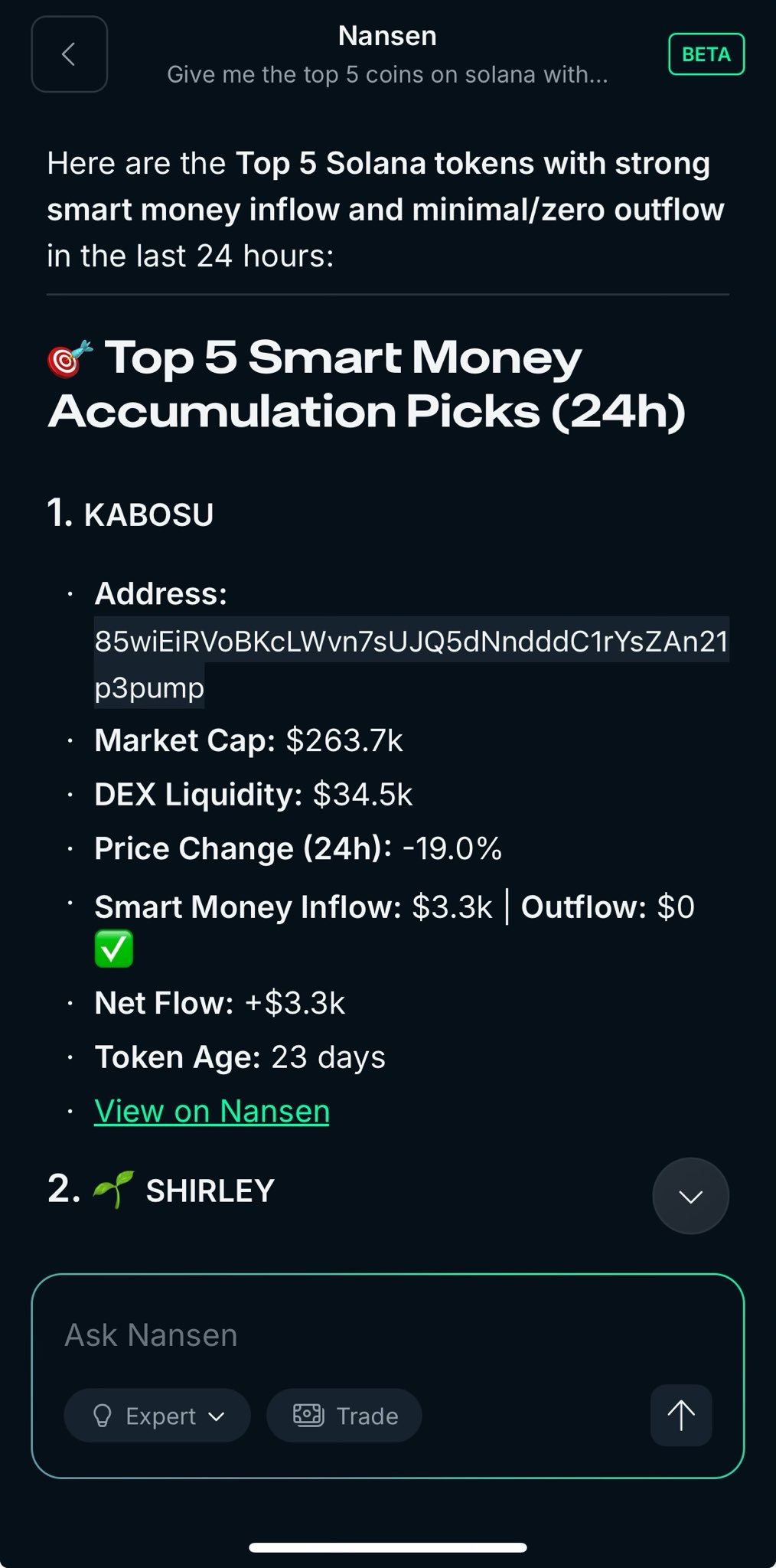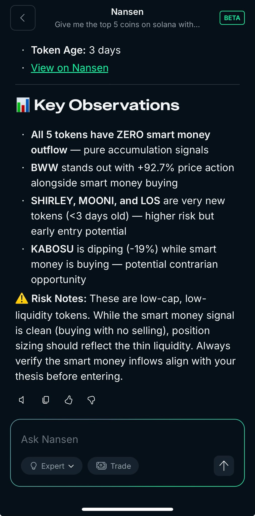 I checked Solana smart money netflows in the last 24hrs on mobile using @nansen_ai