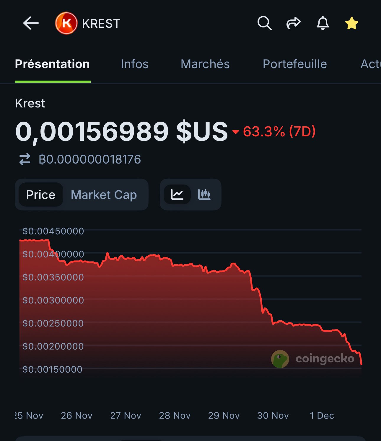 Track the price of krest Network for today, 7 days, 30 days and 90 days