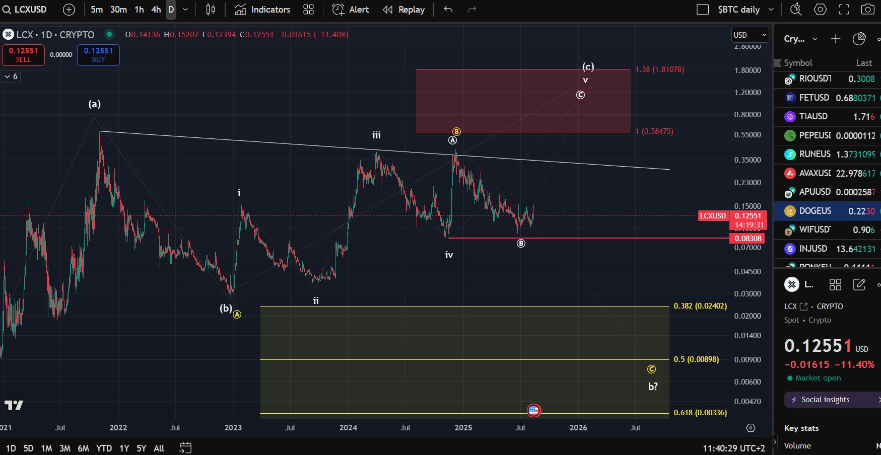 $LCX (by request): Not a clear micro structure. As long as the price remains above the $0.083 price level, a wave-c could unfold to the upside. https://t.co/jcuVSWYRVg
