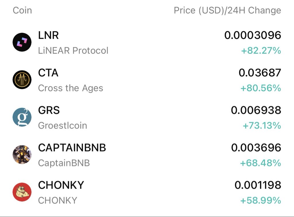 $CAPTAINBNB and $CHONKY followed with solid gains as well.