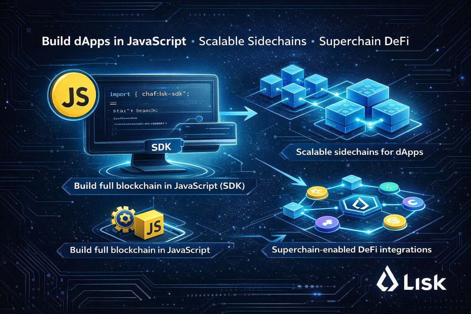 @LiskHQ is a blockchain application platform launched in 2016, focusing on empowering JavaScript developers to build dApps and application-specific blockchains. Its 2019 SDK allows full blockchain creation in JavaScript, emphasizing accessibility, sidechain scalability, and developer-driven innovation.