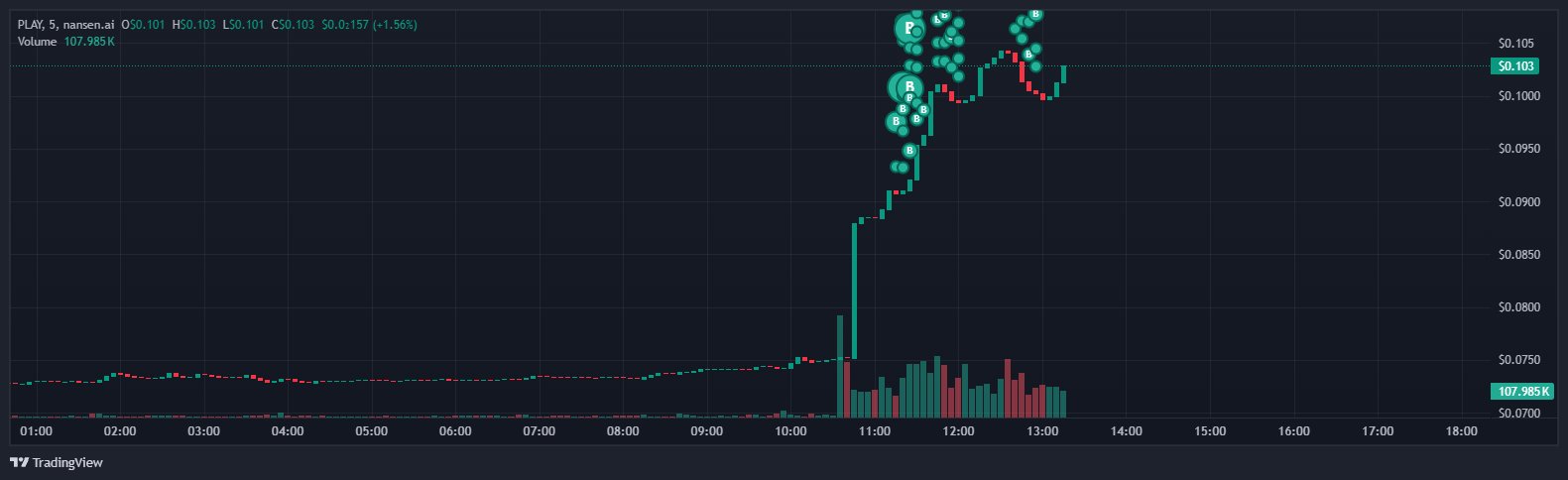 Profitable wallets buy $PLAY again, driving price sharply up and volume expanding.