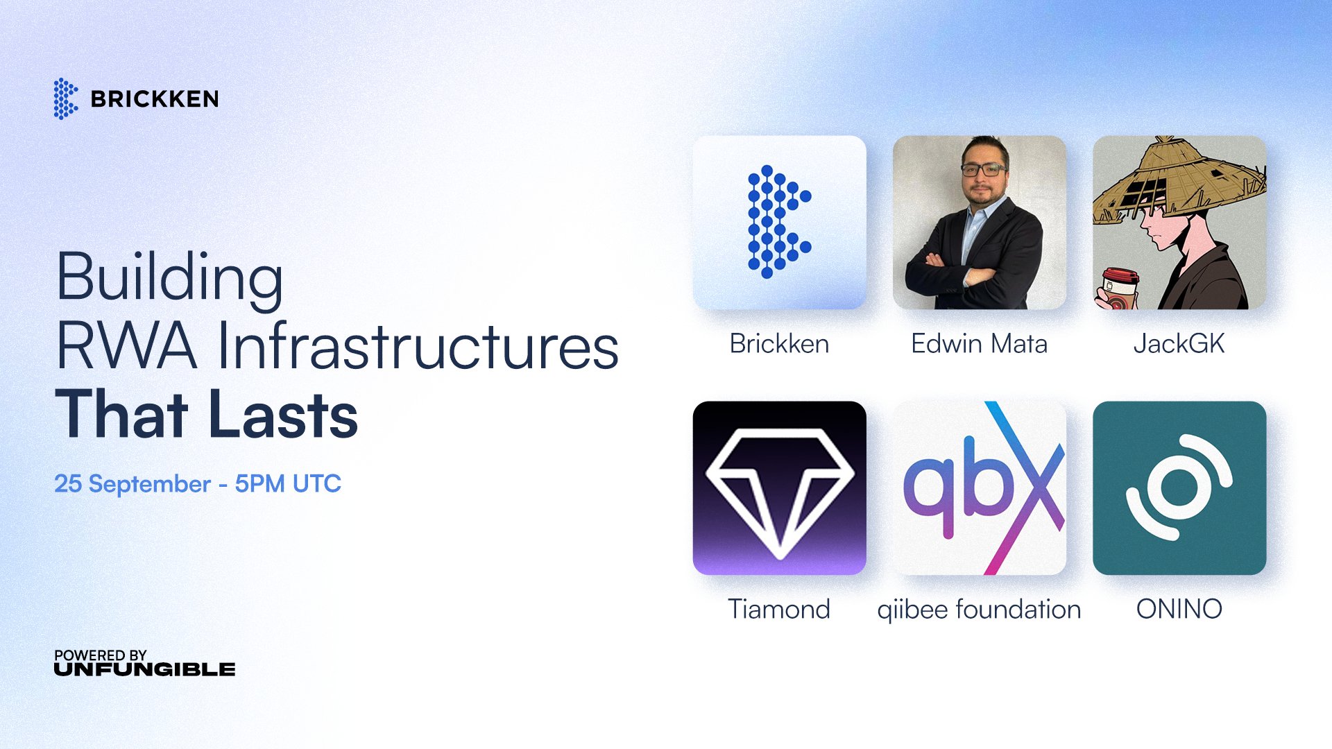 🎙 Building RWA Infrastructures that Lasts | X SpaceJoin us tomorrow, Sep 25 at 5pm UTC for another top-class RWA discussion. Our CEO @EdwMata and host @JackGK_BTC will be joined by @Tiamonds , @qiibeefdn , and @onino_io to discuss how RWA infrastructure can be built to stand the test of time.🔑 Don’t miss this week’s alpha!