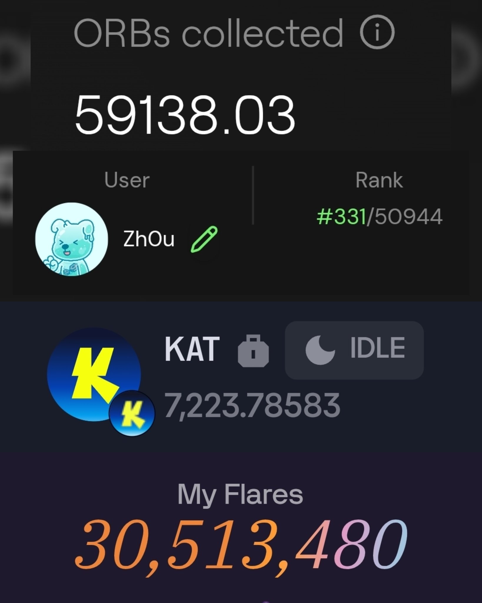 The author updated the progress of on-chain projects such as Multipli and displayed personal holdings of ORBs, KAT, and Flares.