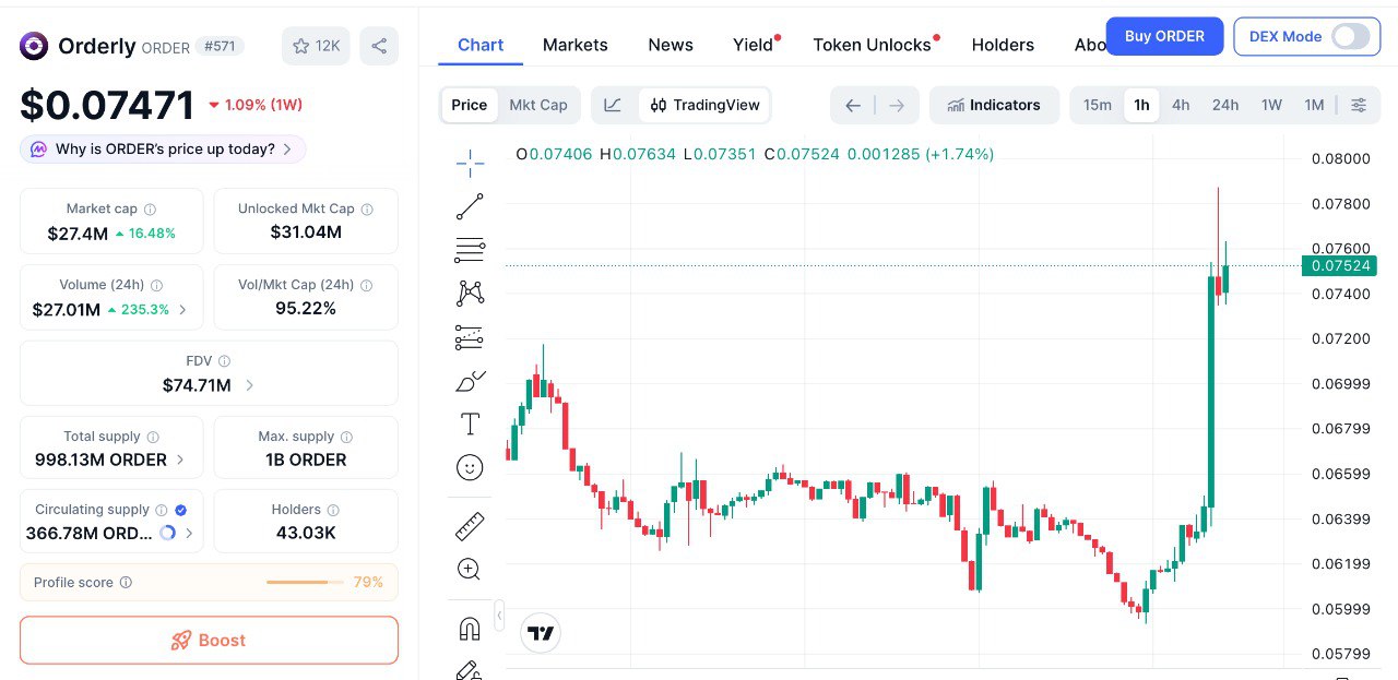 $ORDERLY just made a pretty noticeable recovery after the recent market dip.