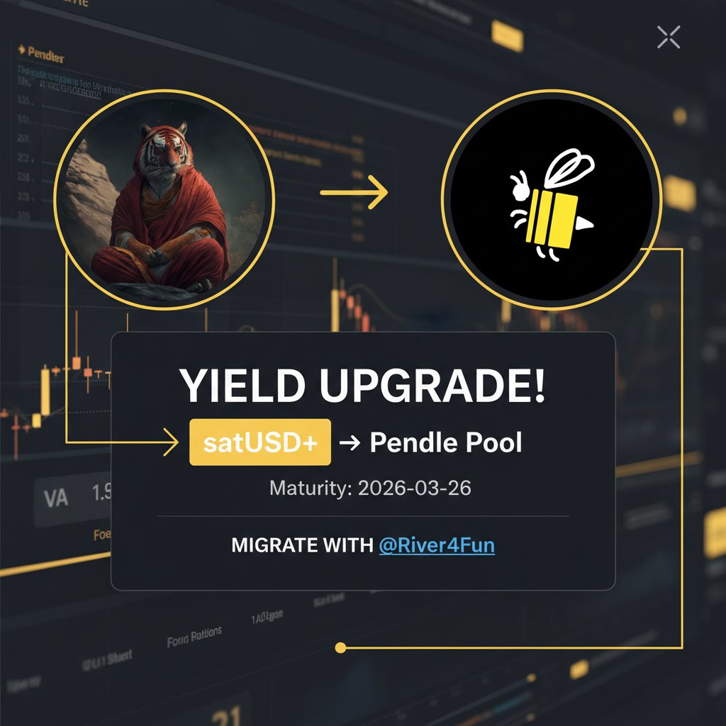 midday check-in: moved satUSD+ into the new @pendle_fi pool (mat. 2026-03-26), yield ticked up fast