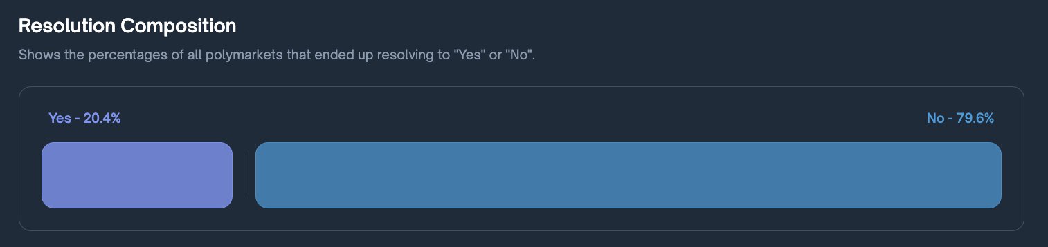 > 79.6% of all Polymarket markets resolve to NO.
