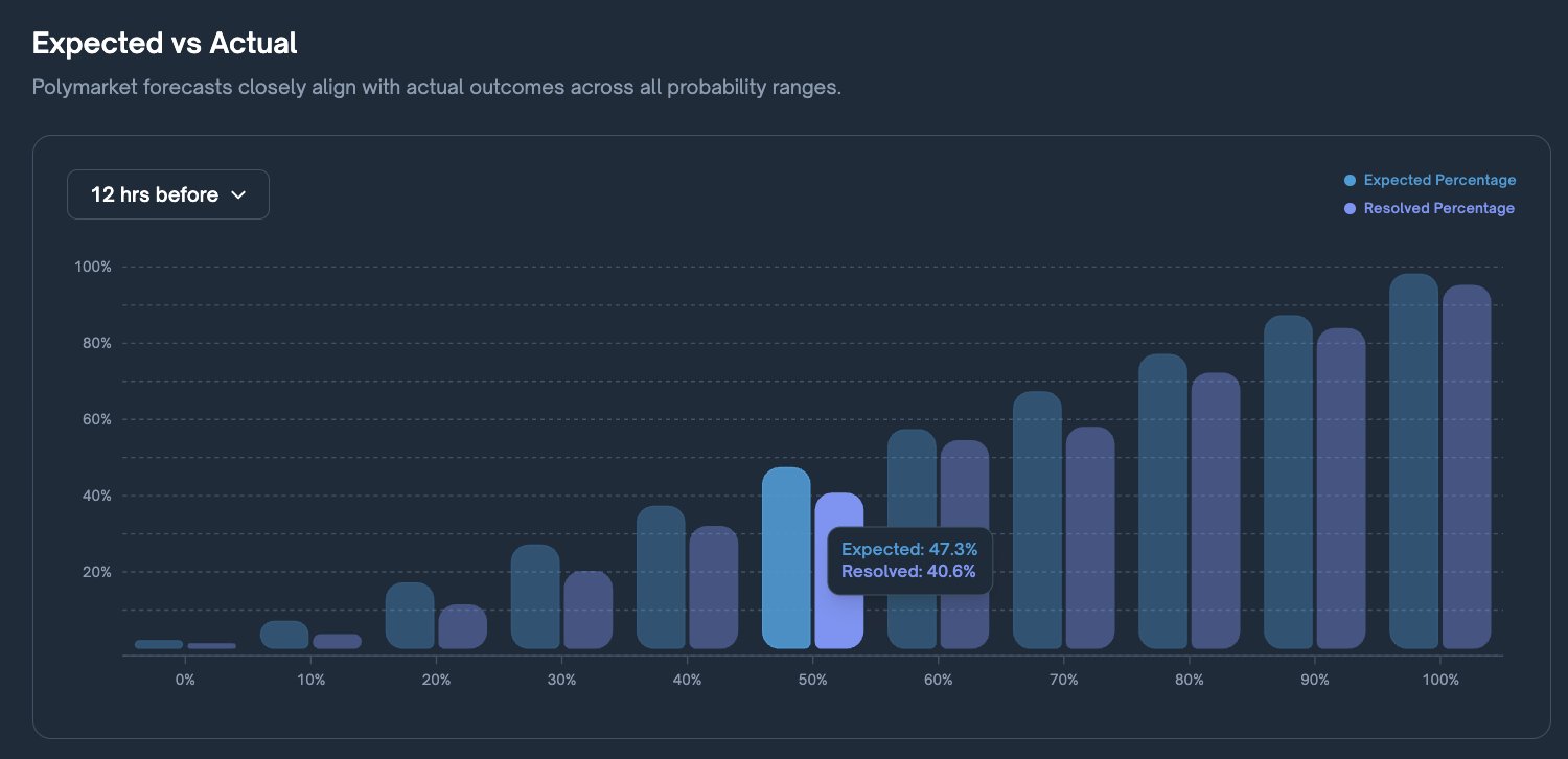 Data shows an average 6.7% gap between implied odds and reality just 12 hours before resolution.