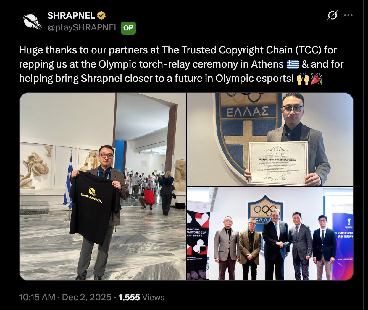The user strongly doubts and mocks the claim that the Shrapnel game is entering Olympic esports.