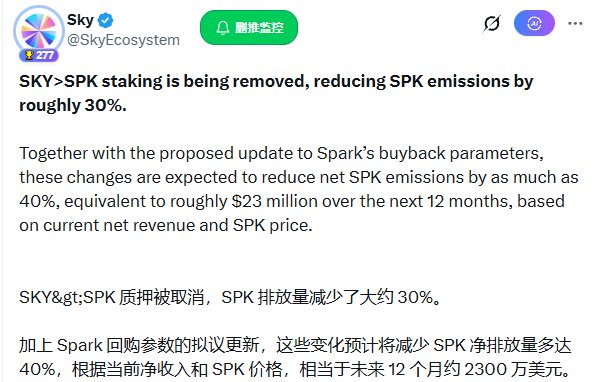 👉 Sky emission reduction action: remove SPK rewards from SKY staking, cutting off the inflation outlet.