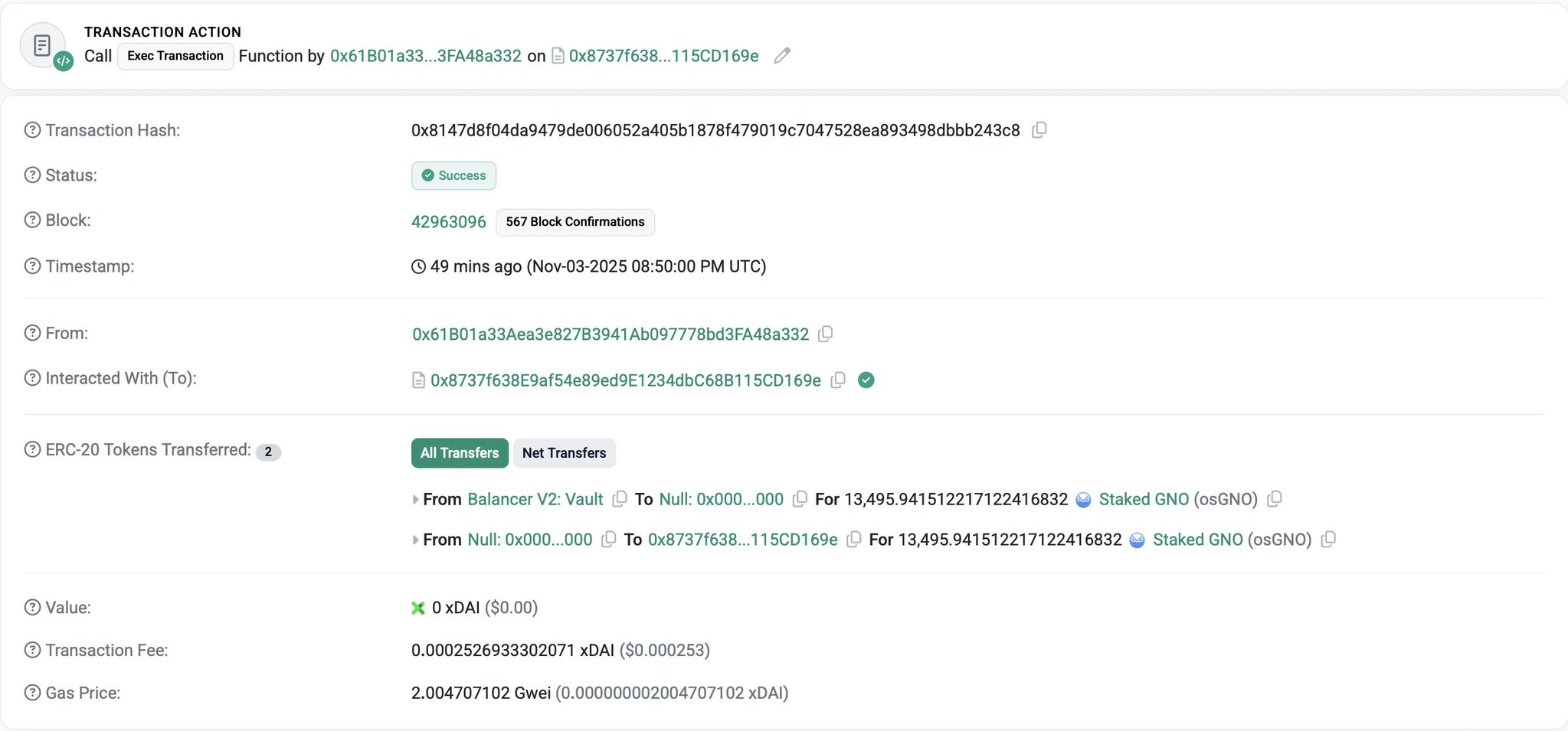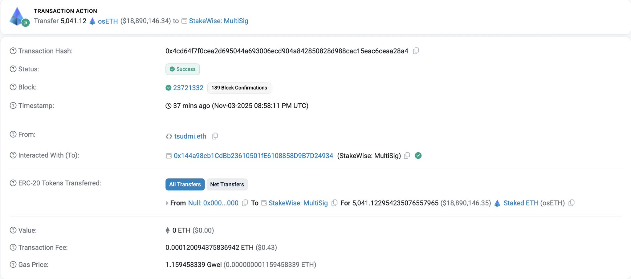 Just half an hour earlier, StakeWise DAO emergency multisig has executed a series of transactions, recovering ~5,041 osETH (~$19M) and 13,495 osGNO (~$1.7M) tokens from the Balancer exploiter.