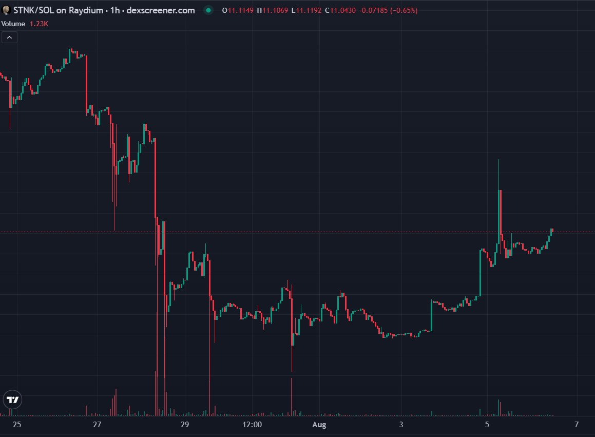 I've held $STNK for a while now and have an ok bag (want more). It peaked around 200m and has been in a consolidation pattern for a while now. Normally most of these types of coins die and never return but this one has some pretty solid people behind it (hopefully will be revealed soon) and a great community. I'm in it @STONKS_SOL