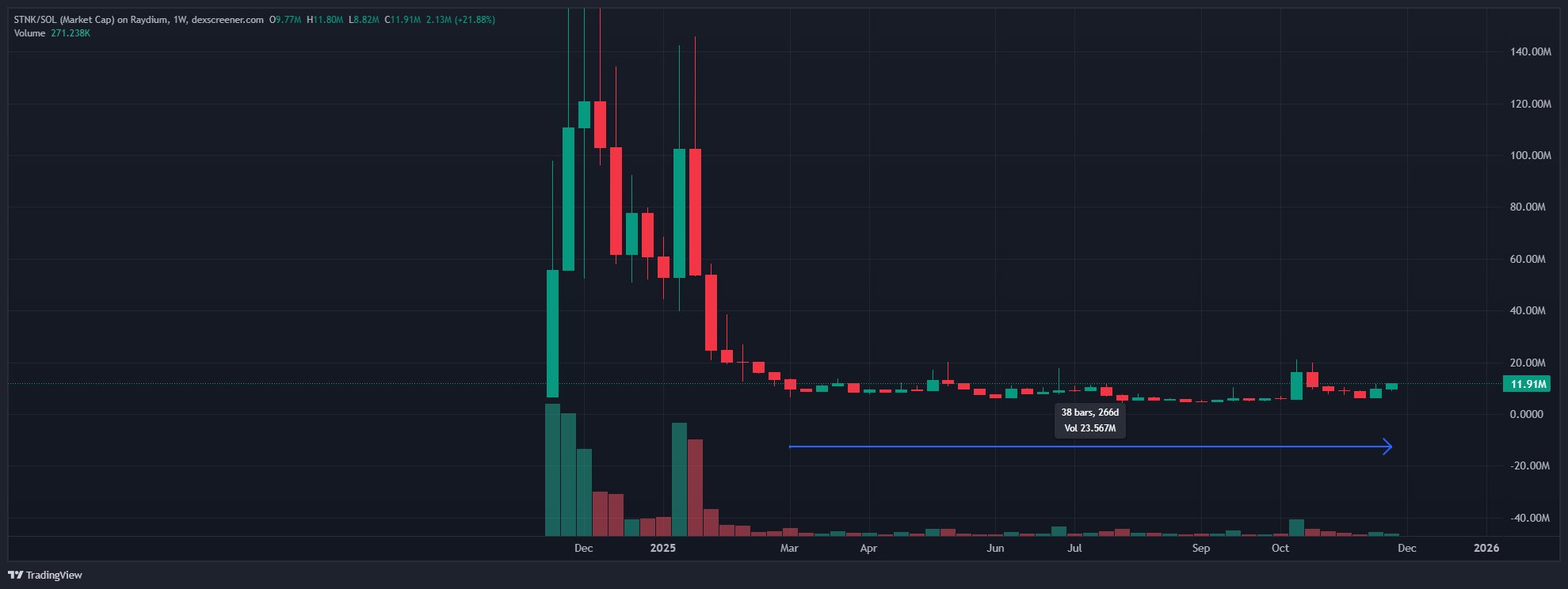 The author is bullish on STNK, believing it has upside potential after a long consolidation due to community and team support.