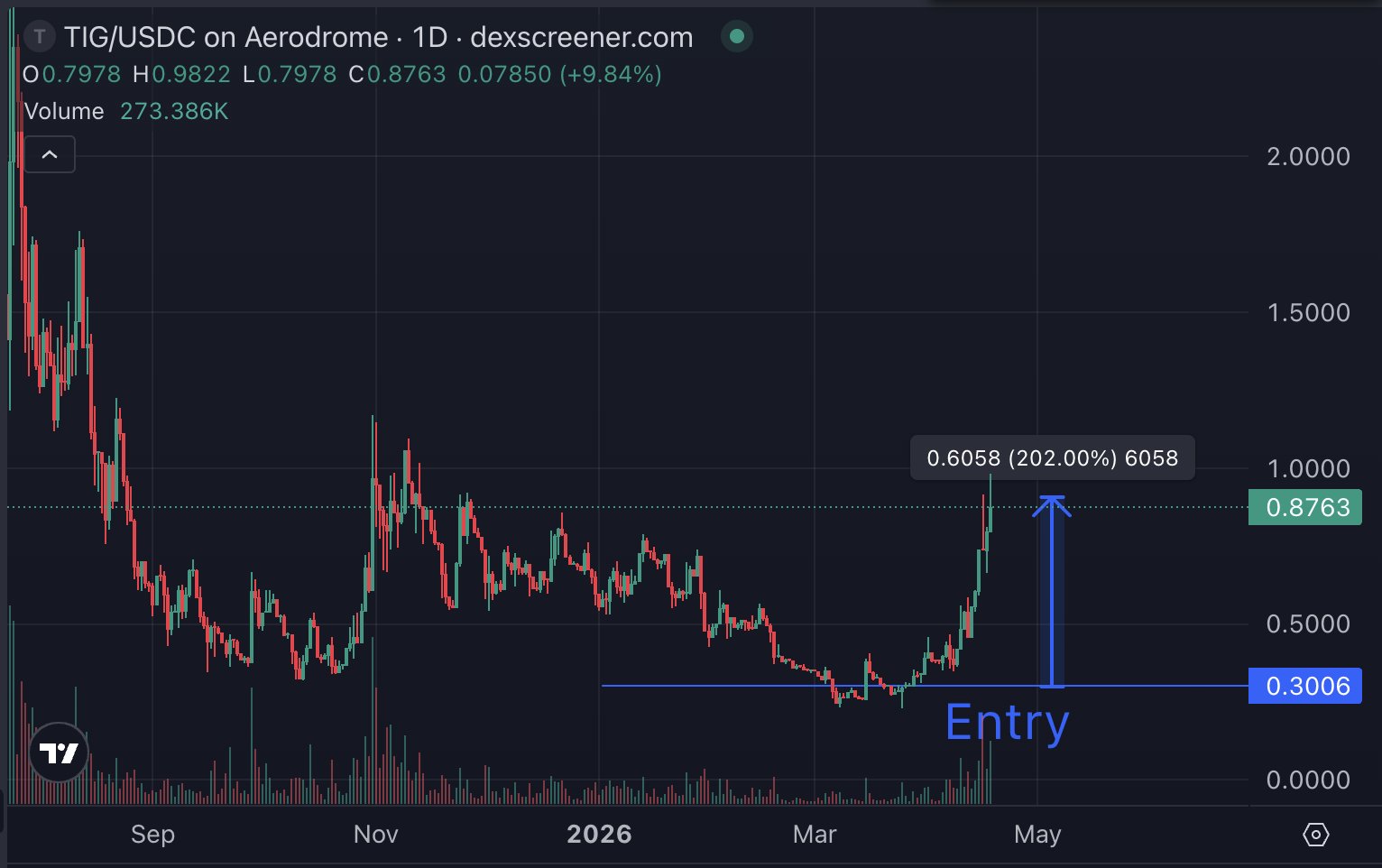 TIG is considered the most asymmetric AI algorithm investment of this cycle, having risen more than 200% from the bottom.