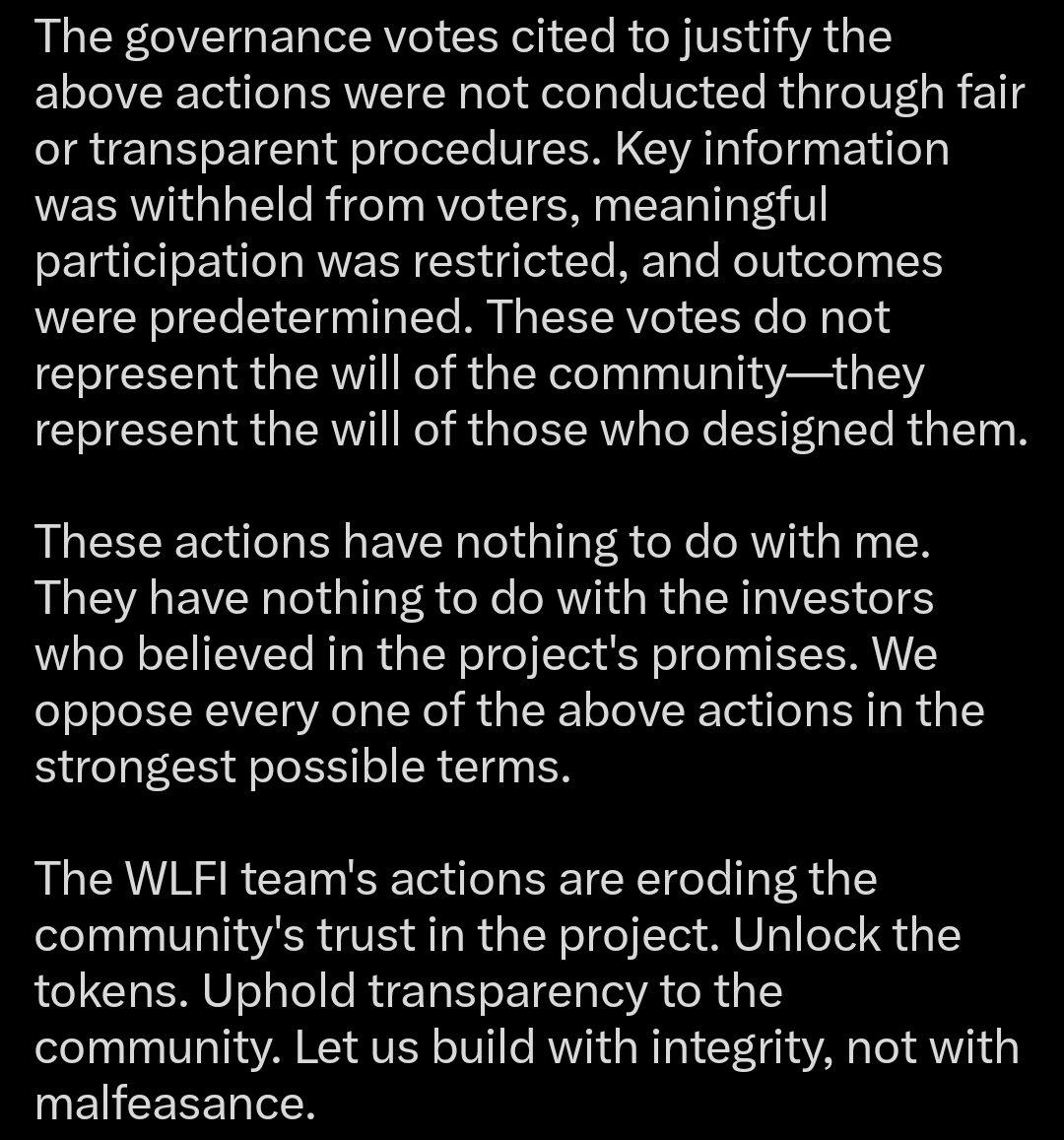 The WLFI team's conduct is eroding the community's trust in the project. Unlock the token, maintain transparency for the community. Let us build with integrity, not with misconduct.