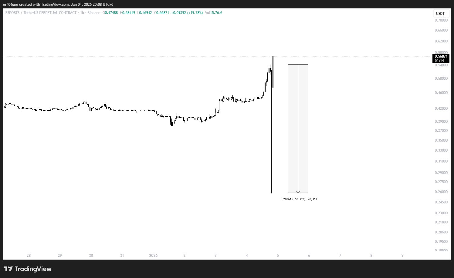 The price of ESPORTS plummeted and then surged instantly, and the author warns that it is a crypto scam.